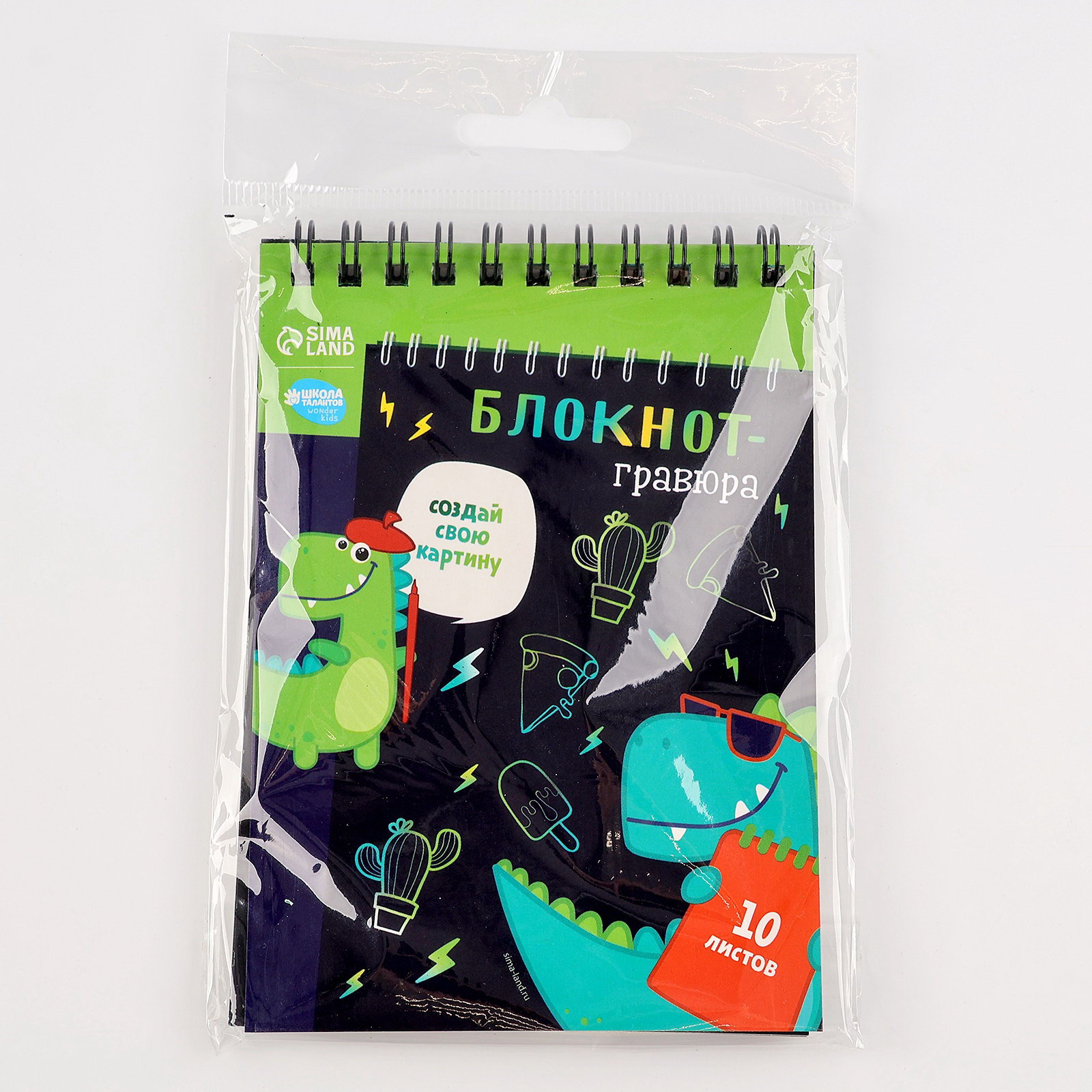 Гравюра блокнот детский Dinousaur style, 10 листов, штихель, 0.8x14x10 см., Школа талантов, Китай