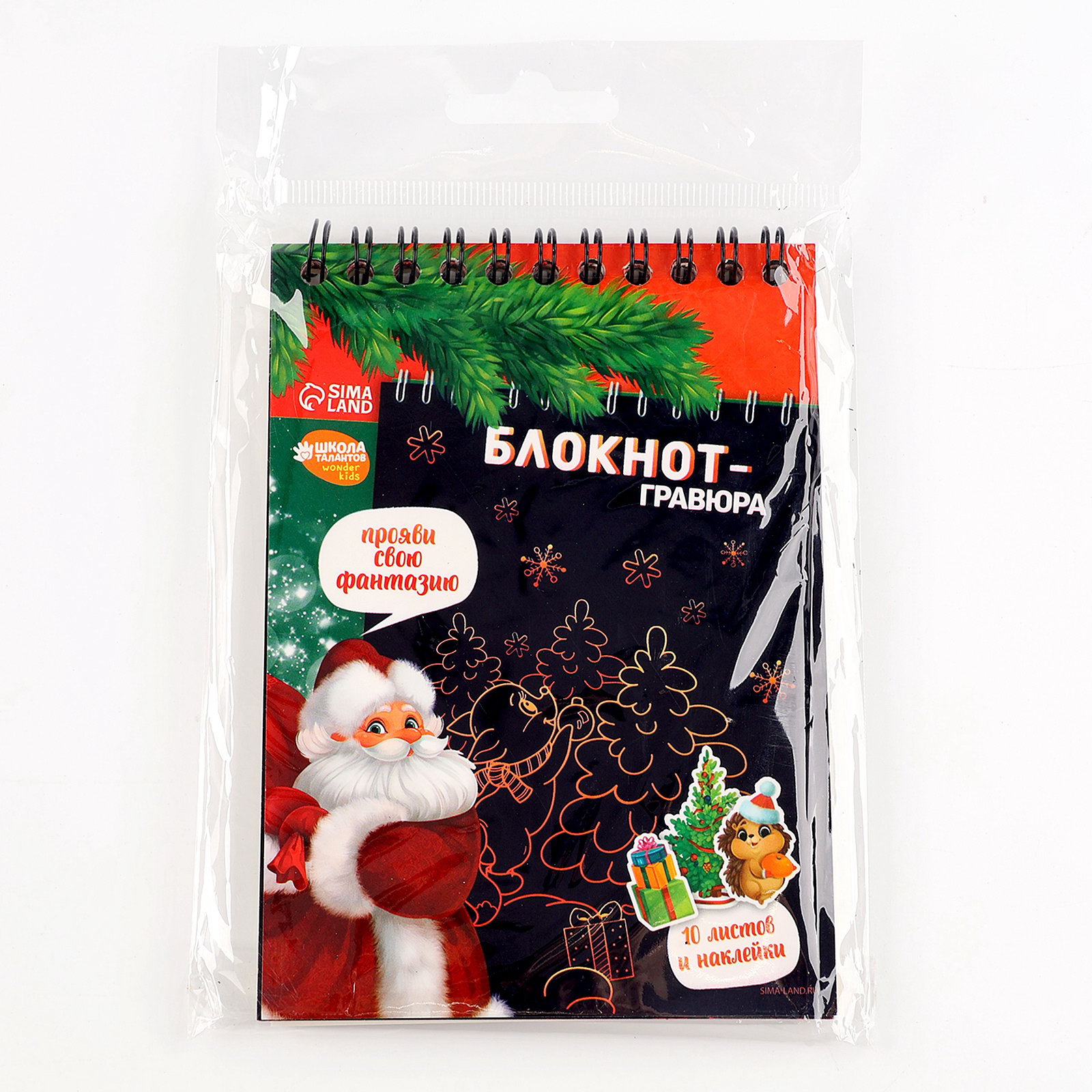 Блокнот - гравюра "С Новым годом!", 10 листов, лист наклеек, 10x14x0.8 см., Школа талантов, Китай