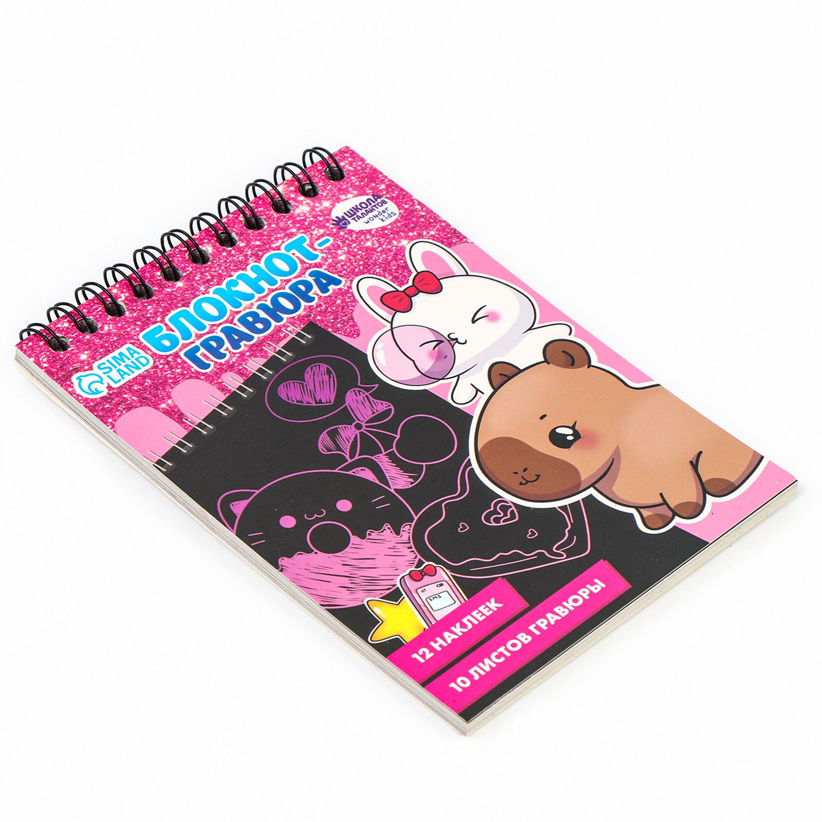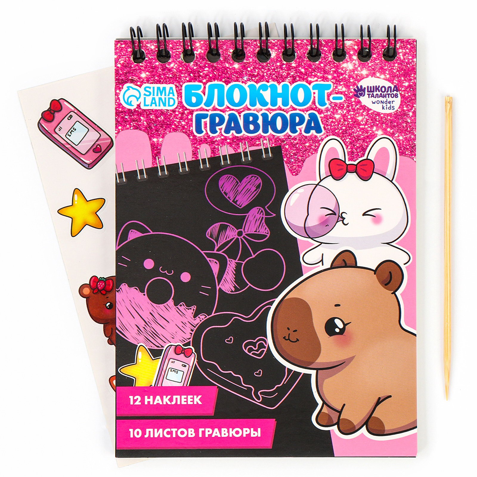 Блокнот-гравюра "Капибара", 10 листов, лист наклеек, штихель, формат А6, 10.5x14.8x0.8 см., Школа талантов, Китай