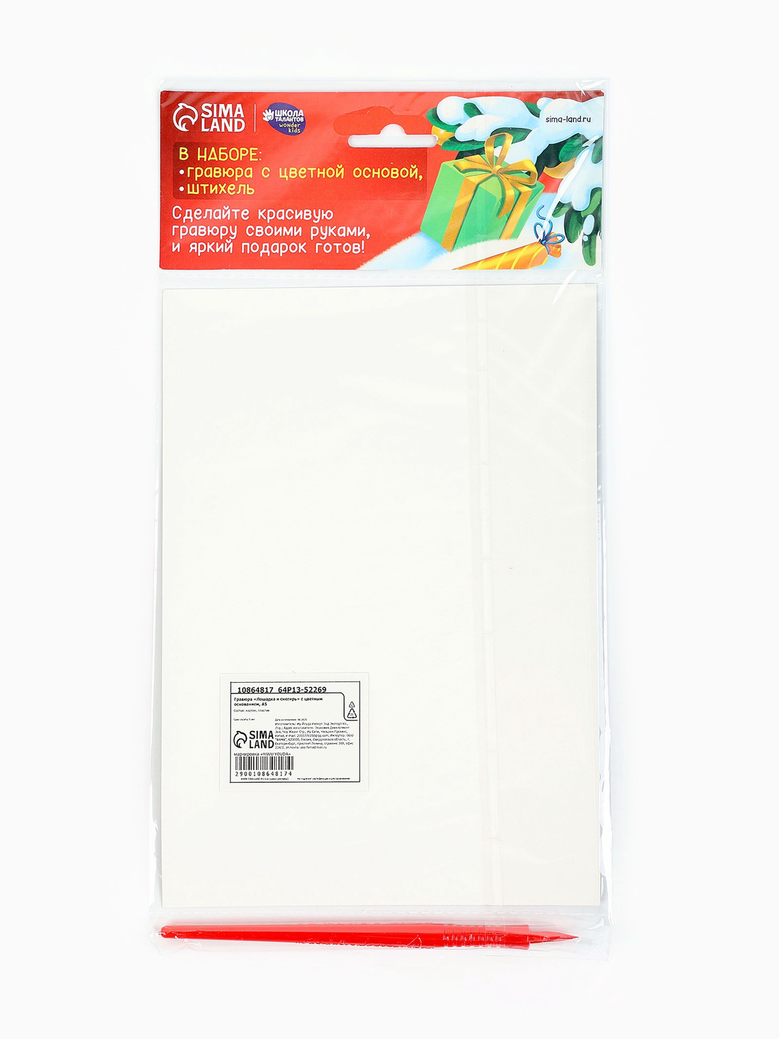Возраст: Детский, От 3 лет Размер упаковки: 15 x 1 x 21.5 см. tnved: 4911990000 Формат: А5 Для кого: Унисекс Вид гравюры: Гравюры-картины Особенности гравюры: Разноцветное основание Тематика праздника: Новый год Адресат: Без адресата Символ года: Нет Гравюра древнее искусство, получившее своё распространение ещё несколько столетий тому назад, а теперь доступное даже ребёнку. Техника гравюры особенная, невероятно увлекательная, но при этом достаточно простая. Гравюра представляет собой многослойное панно, покрытое чёрной краской, на которое нанесён контур рисунка. С помощью особого скребка (штихеля), который входит в набор, путём процарапывания и создается гравюра. Как работать с набором: На чёрную основу уже нанесён белый контур рисунка. Задача ребёнка аккуратно процарапать штихелем белые контуры, чтобы получить яркую картинку! Поместите готовую работу в раму, и она станет достойным украшением комнаты или прекрасным подарком родным и друзьям. | ||