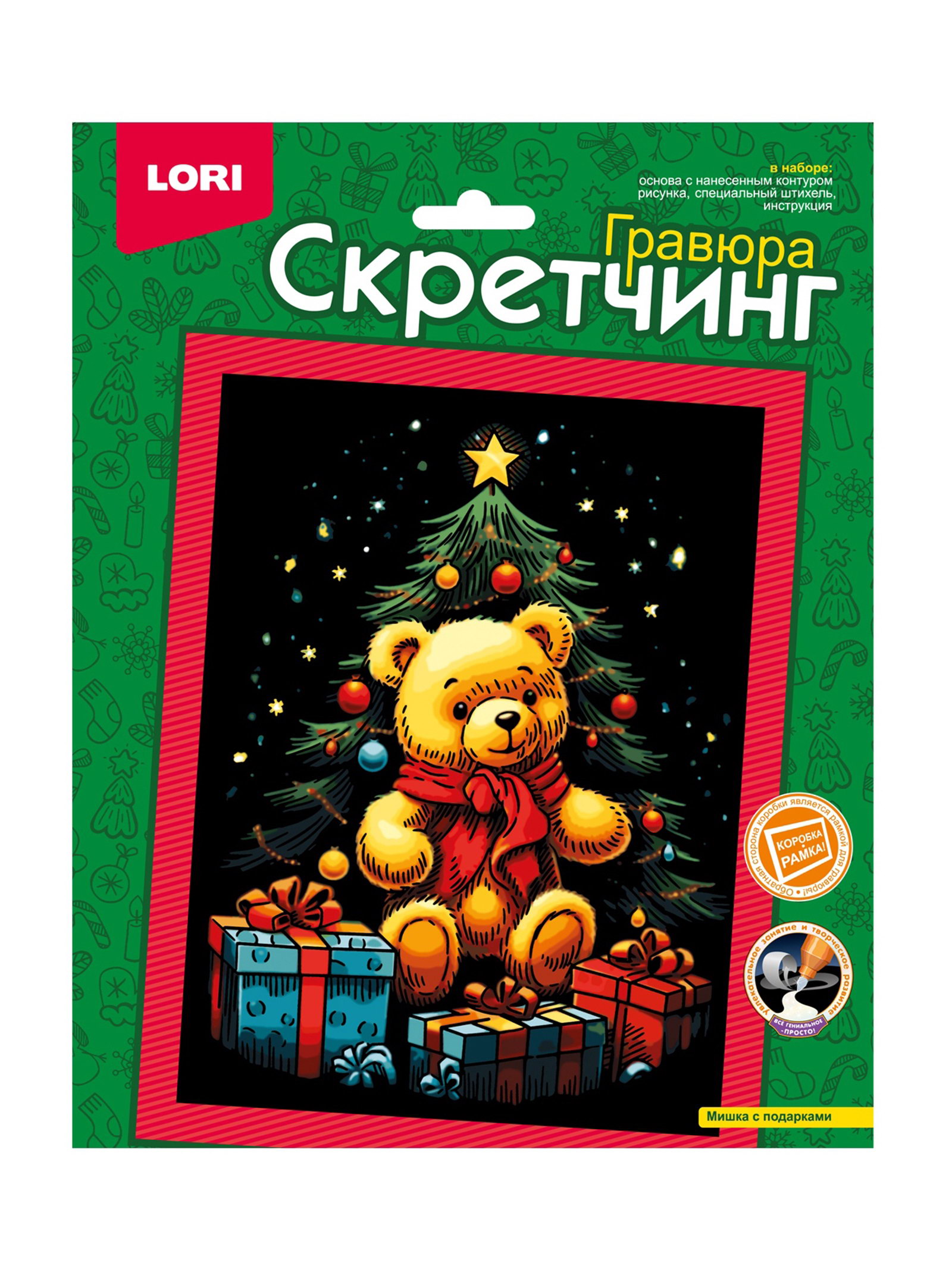 Гравюра - скретчинг "Мишка с подарками", 18x24 см, Lori, Россия