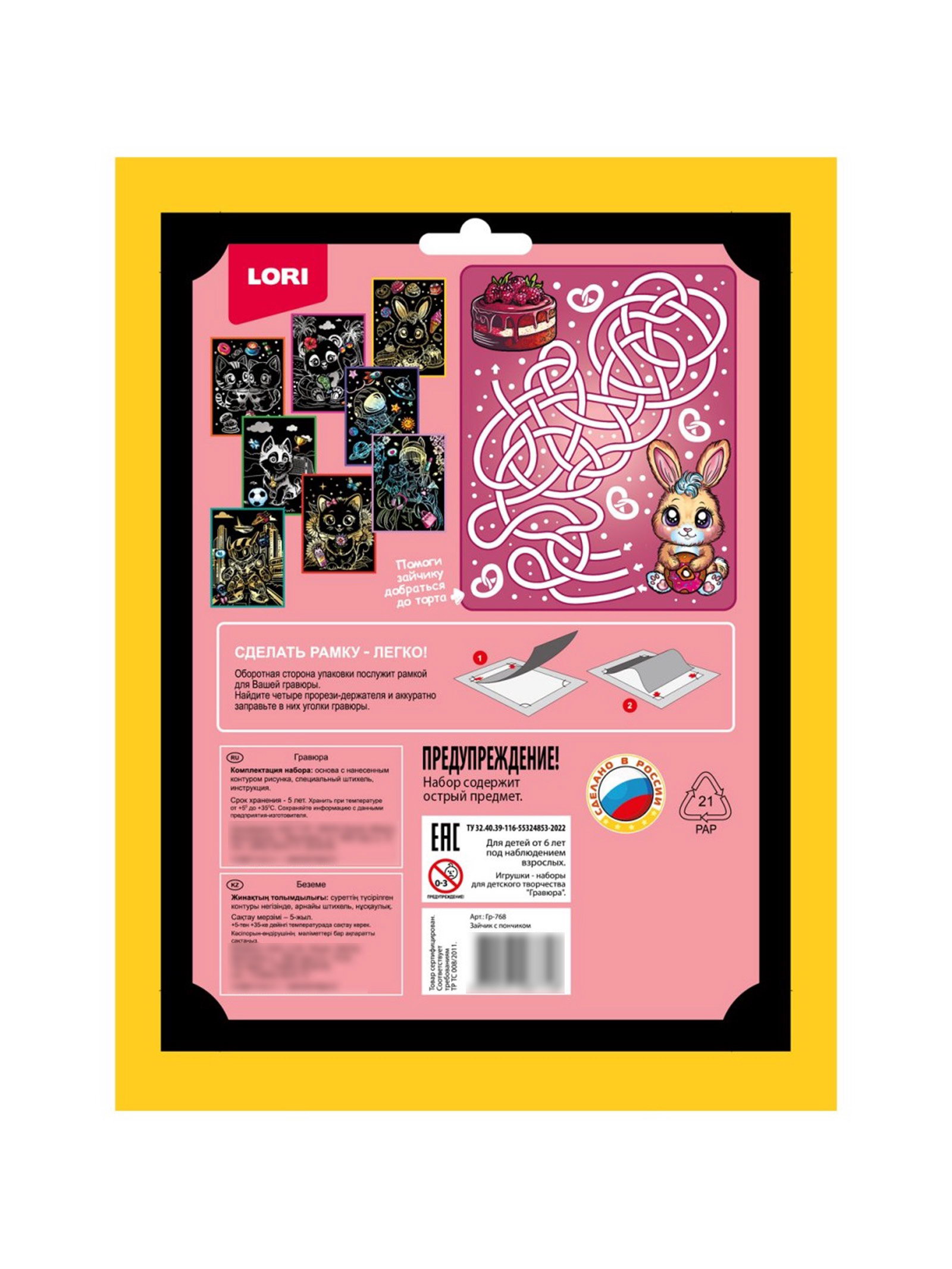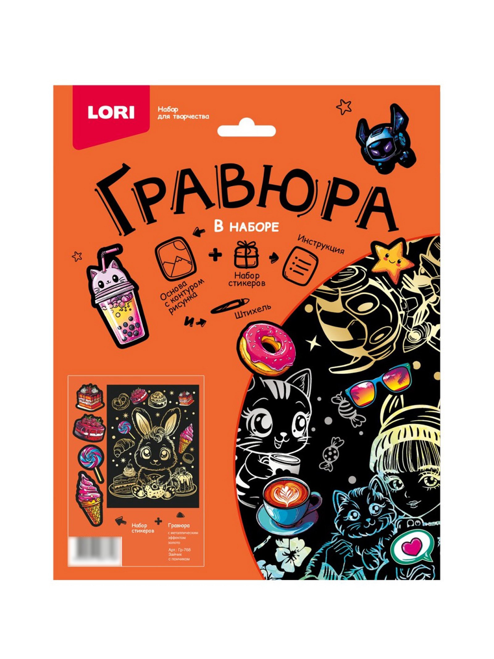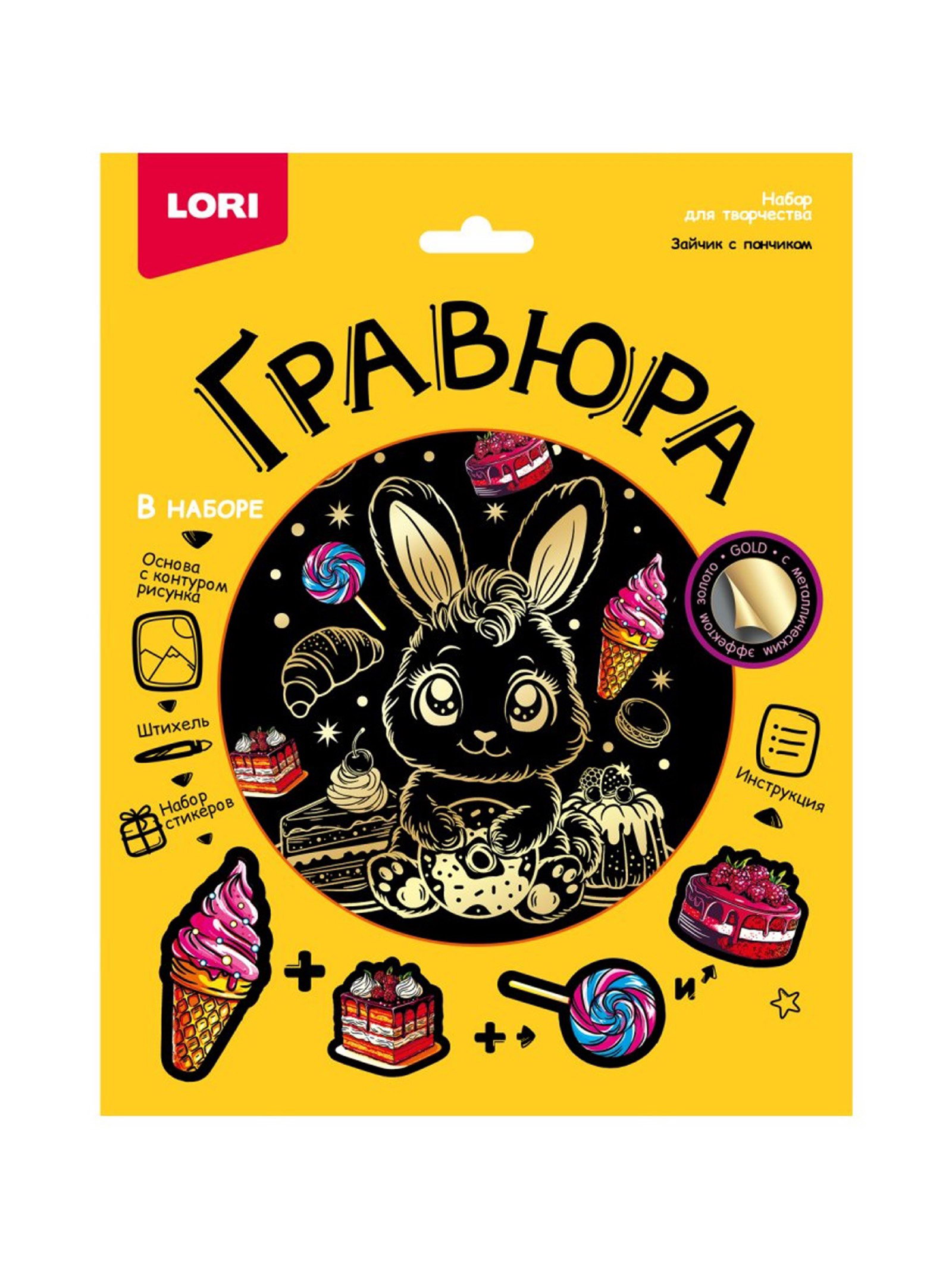 Гравюра "Зайчик с пончиком", 18 x 24 см, с металлическим эффектом "золото", Lori, Россия