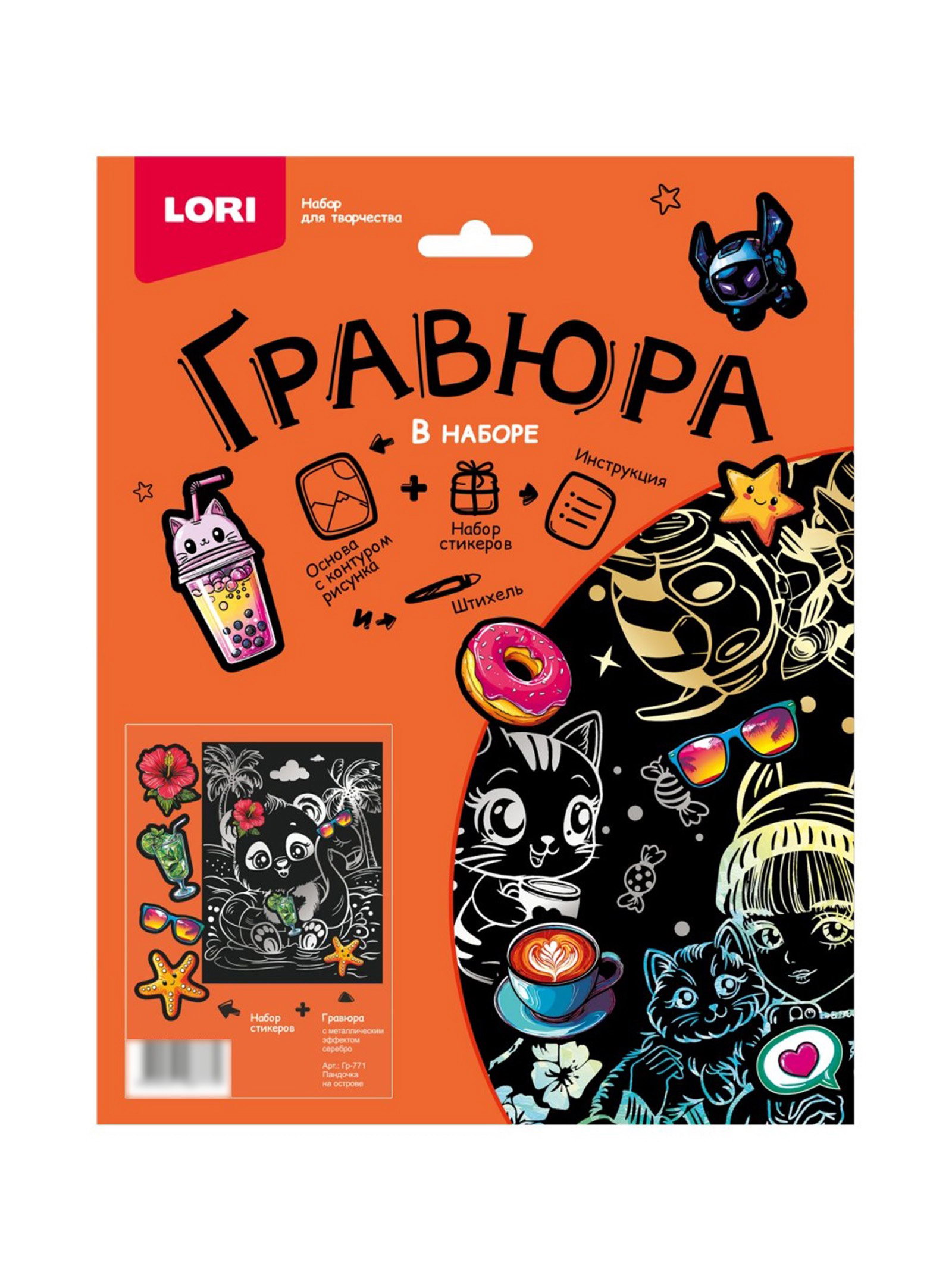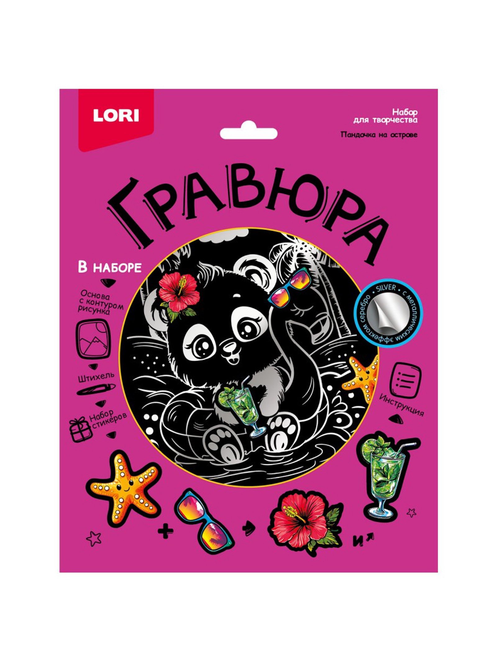 Гравюра "Пандочка на острове", 18х24 см, с металлическим эффектом "серебро", Lori, Россия