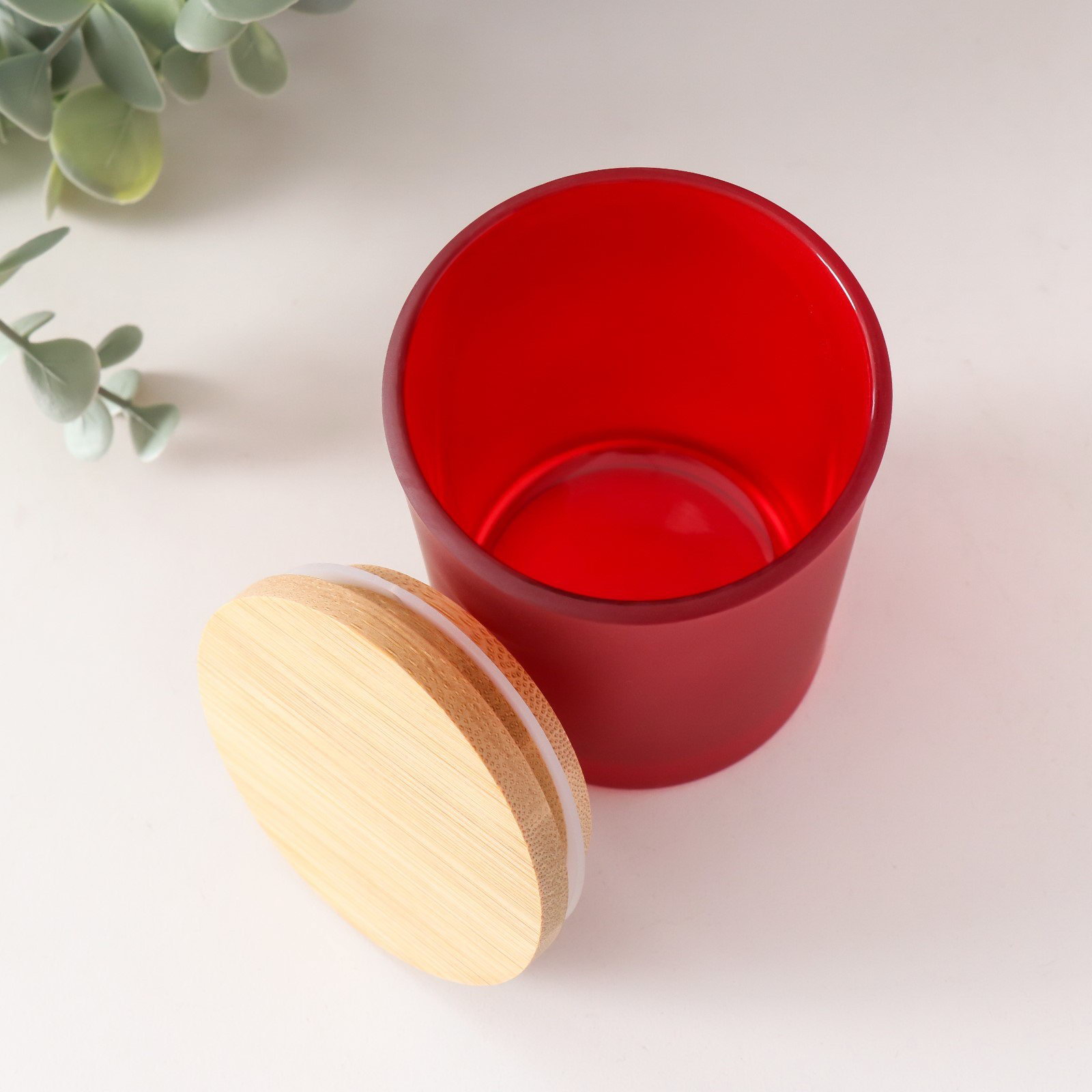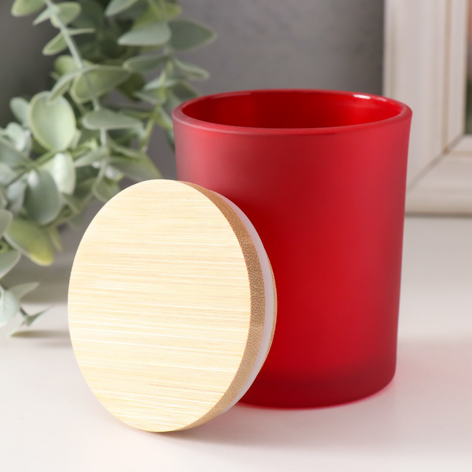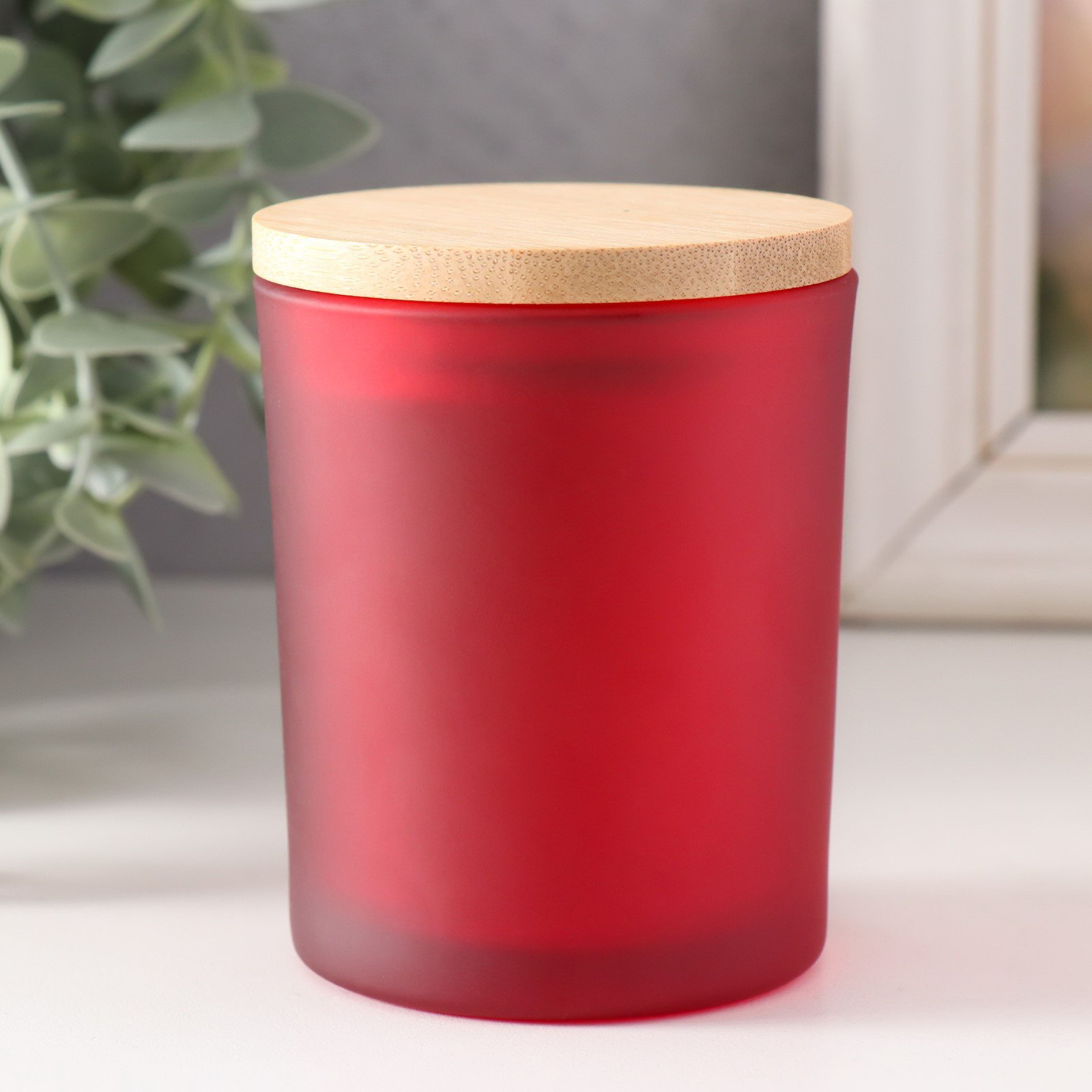 Банка для свечей стекло с крышкой "Красная полуматовая" 220 мл 7х7х8.4 см, 7x7x8.4 см., Китай