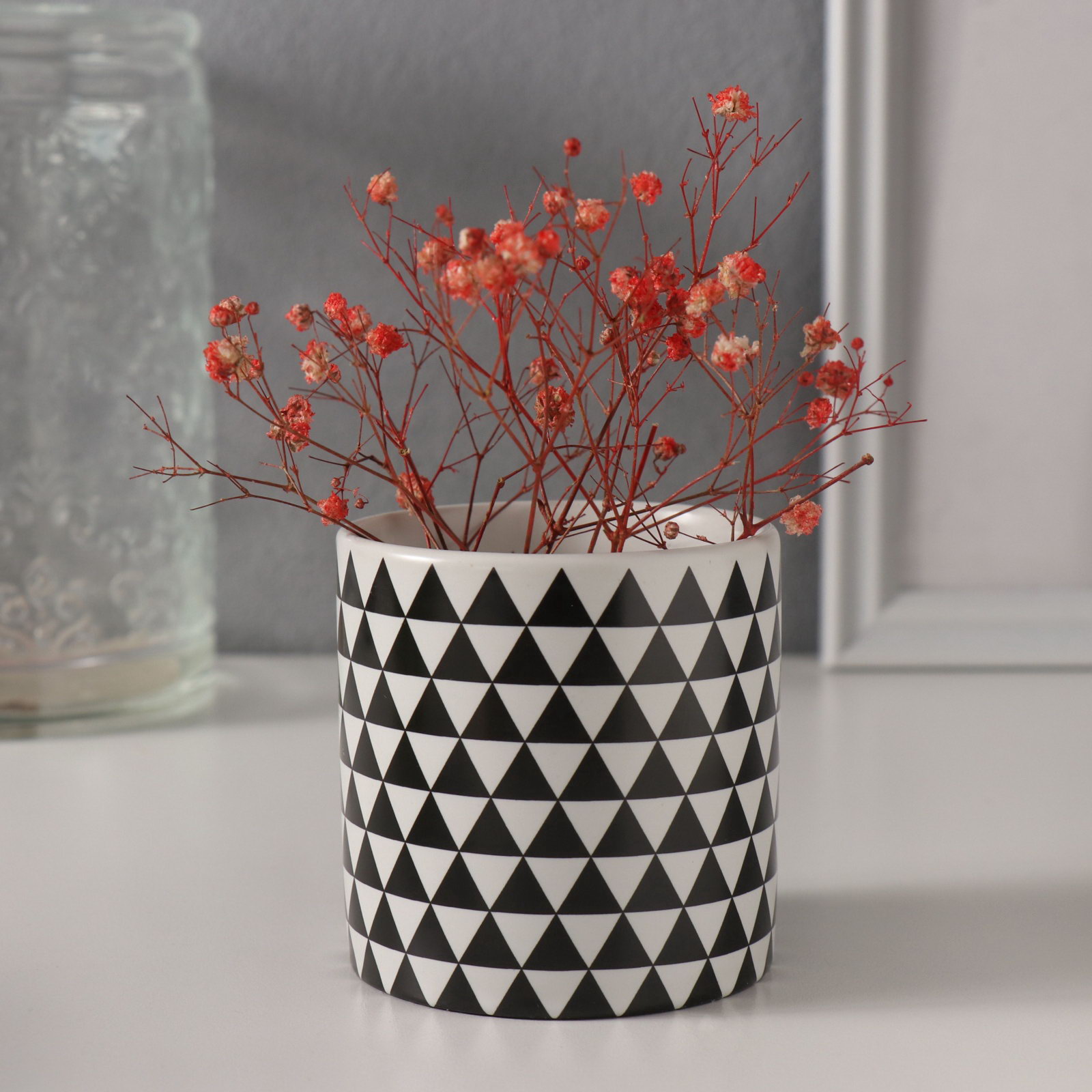 Вазон керамика "Чёрные треугольники" 200 мл 7.3x7.3x7.3 см, 7.3x7.3x7.5 см., Китай