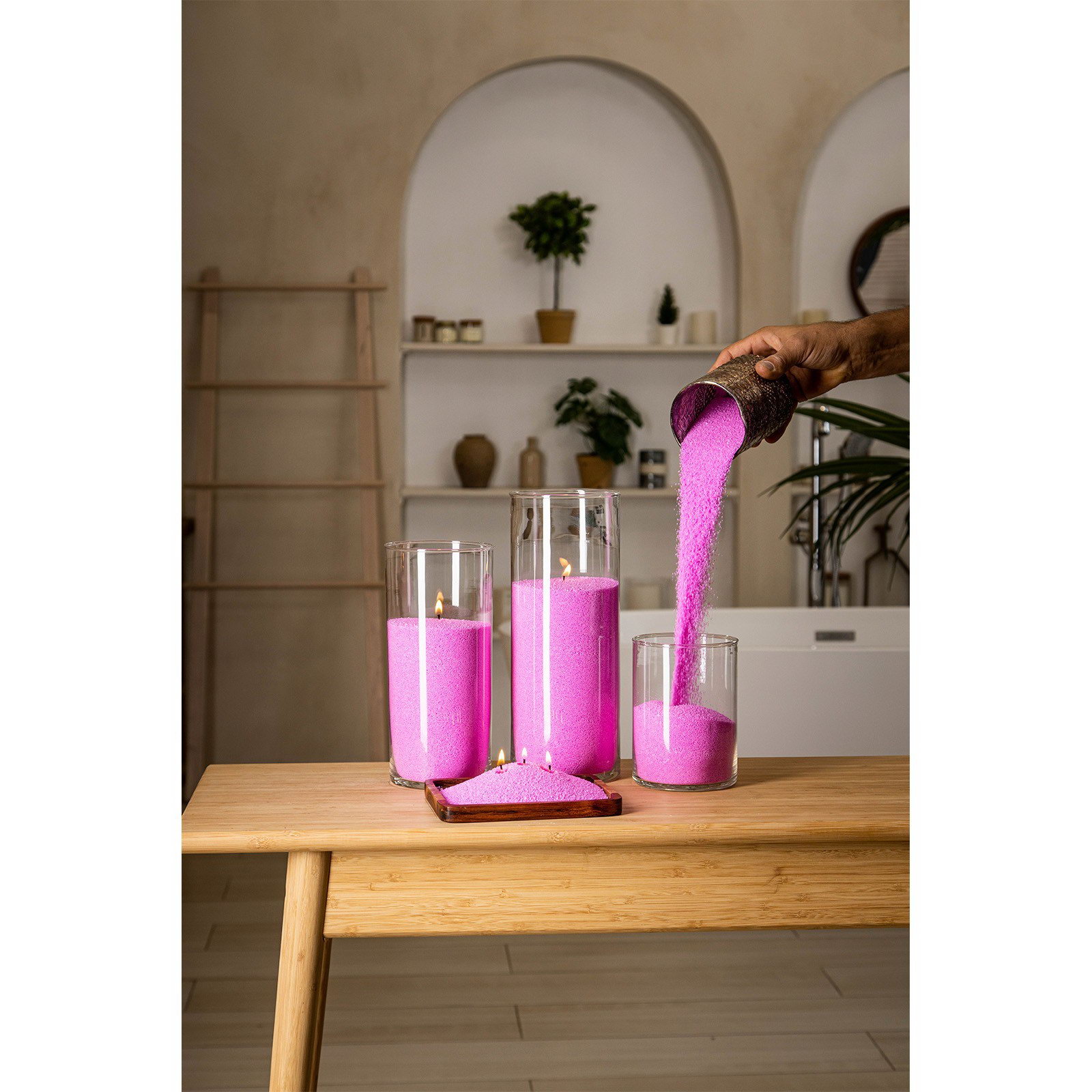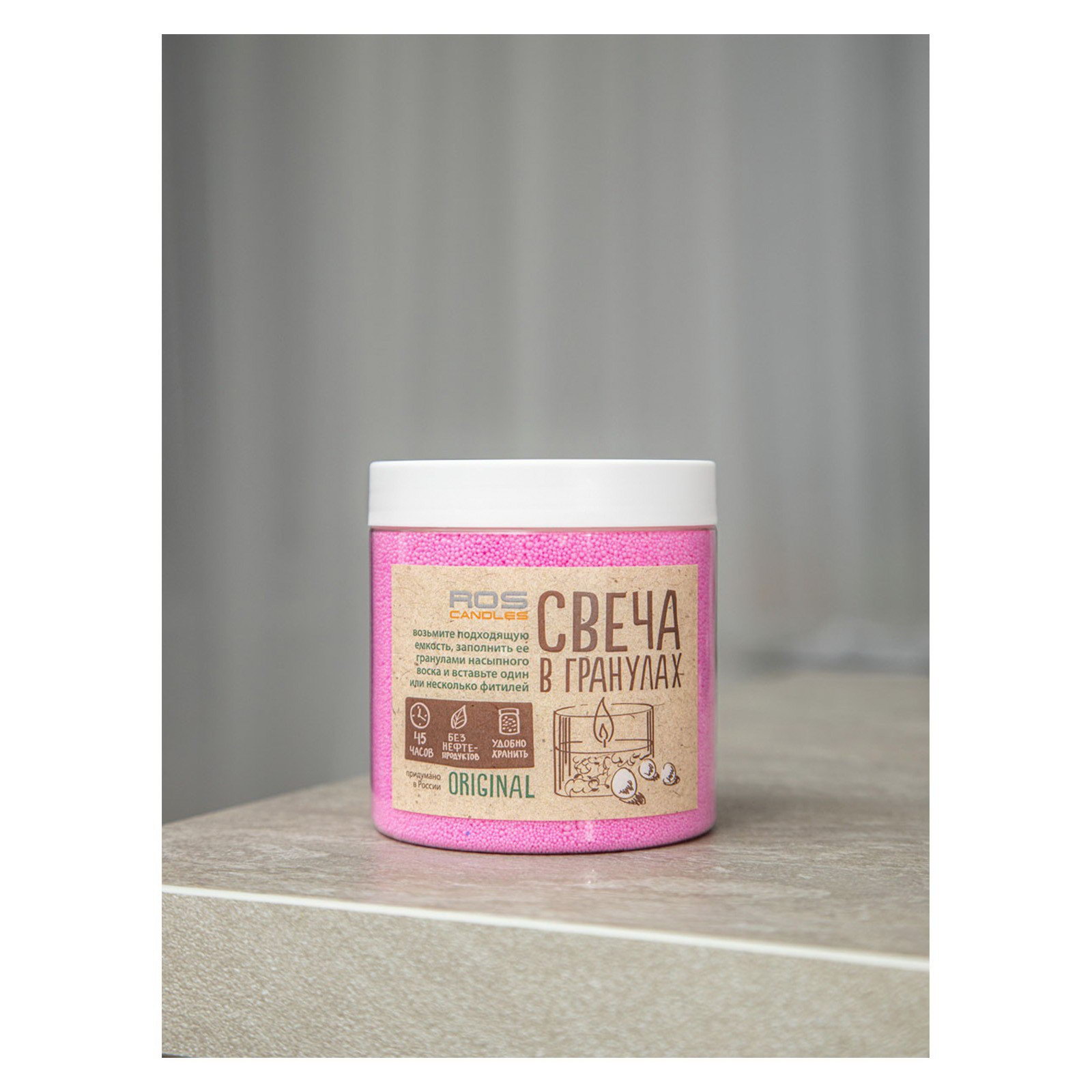 Свеча в гранулах розовые в банке ПЭТ, 300 г + фитили, RosCandles, Россия