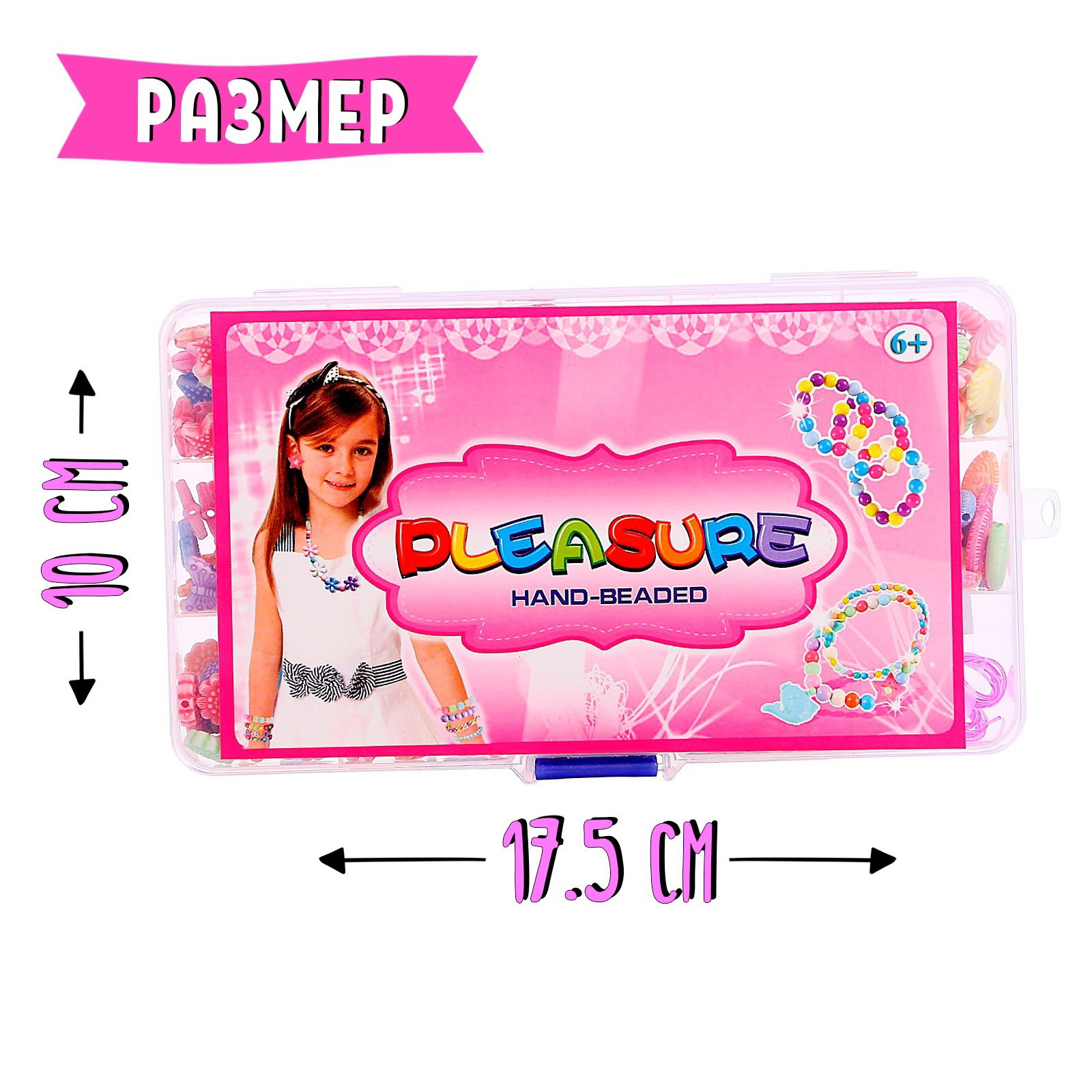 В комплекте: Бисер, Бусины Для создания: Браслеты, Ожерелья, подвески, бусы Размер упаковки: 2 x 10 x 17 см. Возраст: От 7 лет tnved: 3926909700 Вид: Набор украшений Тематика: Стиль и красота Для кого: Для девочки Тематика праздника: 8 Марта Ребёнок в поисках нового хобби? Предложите ему заняться бисероплетением. Из ярких и красочных бусин у него получится создать свои первые авторские украшения ожерелья, браслеты, брелоки, кольца или бусы. Юный творец сможет смастерить парные украшения для себя и друзей. В кейсе есть всё необходимое для творчества: 14 видов элементов, из которых можно делать аксессуары в разных стилях. Занятие бисероплетением поможет усовершенствовать мелкую моторику, потренировать усидчивость и проявить креативность. Набор для творчества пригодится для домашнего досуга и занятий в кружках. Что в наборе?