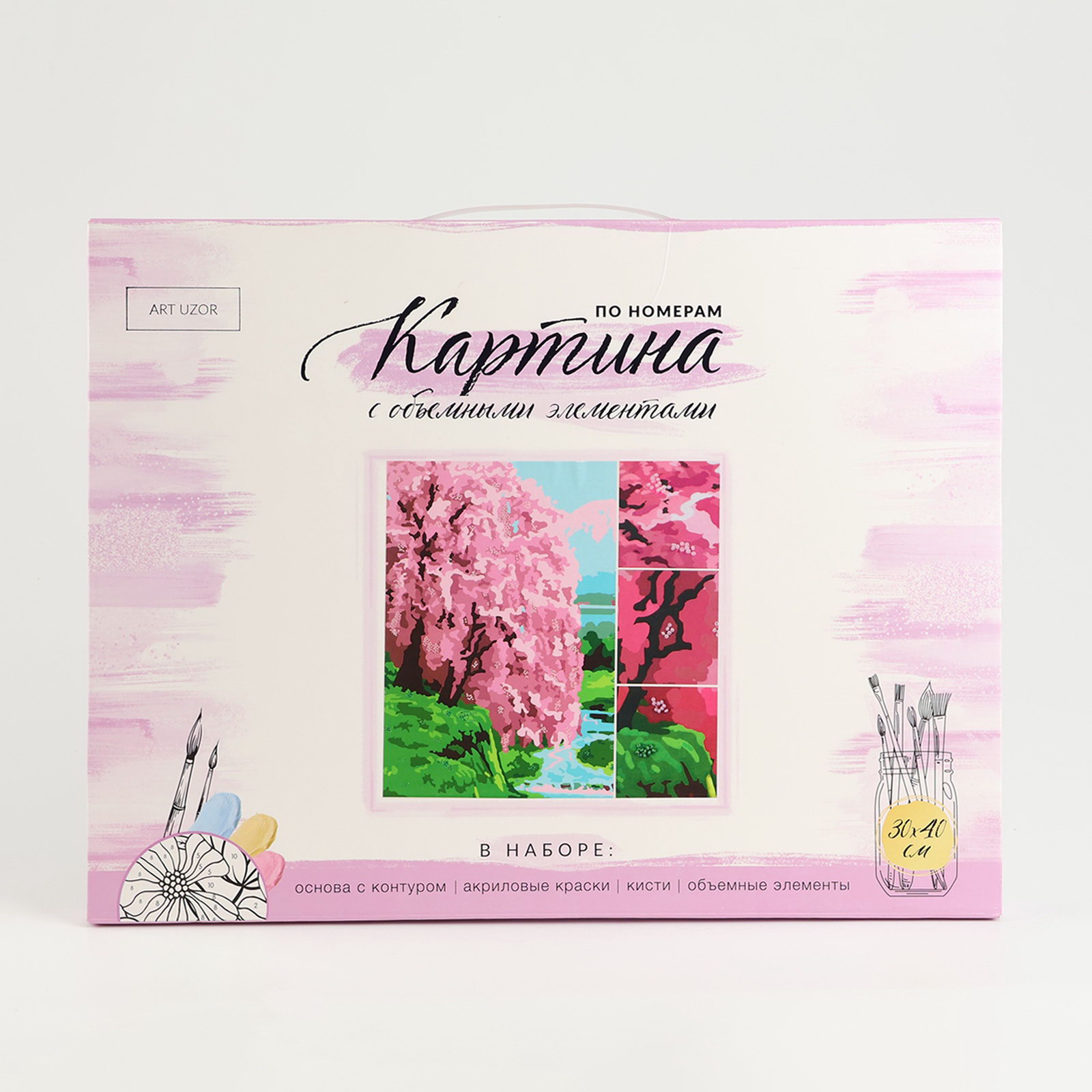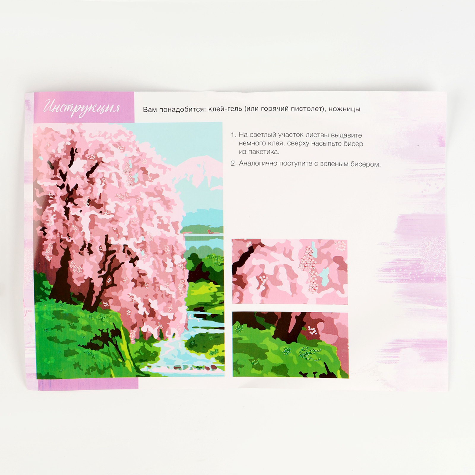 Картина по номерам на картонной основе с биссером "Сакура на берегу", 30 x 40 см, 31x41x2.5 см., Арт Узор, Китай