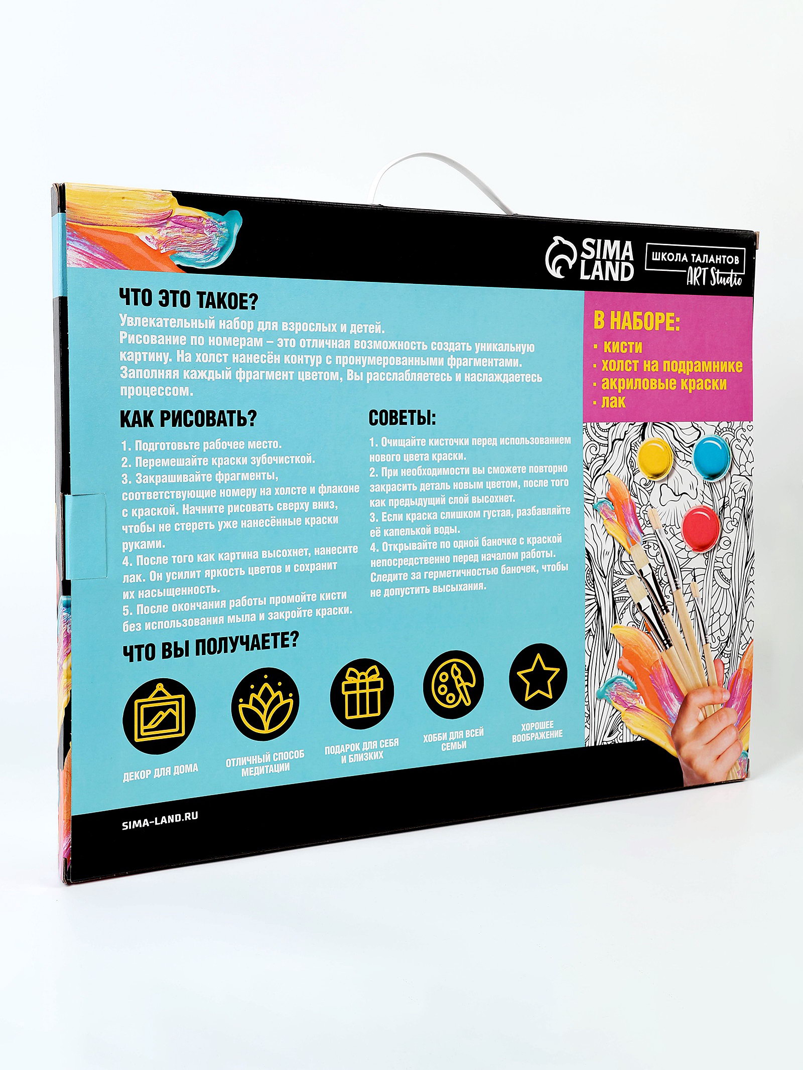 Комплектация набора: С кистью (-ями), С красками, С лаком Размер упаковки: 51 x 41 x 2.5 см. Ориентация изображения: Вертикально Возраст: Для взрослых Для кого: Унисекс Уровень сложности: Сложный tnved: 3213100000 Вид: Холст под роспись Размер, см: 40 x 50 Тематика: Новогодняя Температурное ограничение: Нет Тематика праздника: Новый год Тип холста: Холст на подрамнике Символ года: Нет Темпер. ограничение НЕ НИЖЕ ℃: -50 Набор для рисования станет находкой для людей, которые хотят творить! Специально разработанная уникальная серия росписи по номерам станет верным помощником начинающим художникам, с помощью которой они будут создавать настоящие шедевры изобразительного искусства! Написанная своими руками картина украсит интерьер или станет прекрасным подарком для родных и близких людей. Картина по номерам на холсте с подрамником "Новый год! Дед Мороз", 40x50 см понравится и детям, и взрослым. Холст разделён на множество мелких фрагментов, на каждом из которых указано число, соответствующее цвету, которым нужно закрасить данный участок. В набор входят все необходимые оттенки красок, каждый из которых пронумерован. Поначалу, когда вы только возьмёте холст в руки, будет сложно представить, что за чудесная картина получится в итоге! Но уверяем вас, результат превзойдёт все ожидания. Полотно с множеством оттенков, теней и красок будет выглядеть так, словно оно из музея. Раскрашивание по номерам покорило сердца миллионов людей по всему миру, ведь с ним каждый может создать шедевр! Присоединяйтесь к этому увлекательному занятию, творите и наслаждайтесь результатами. | ||