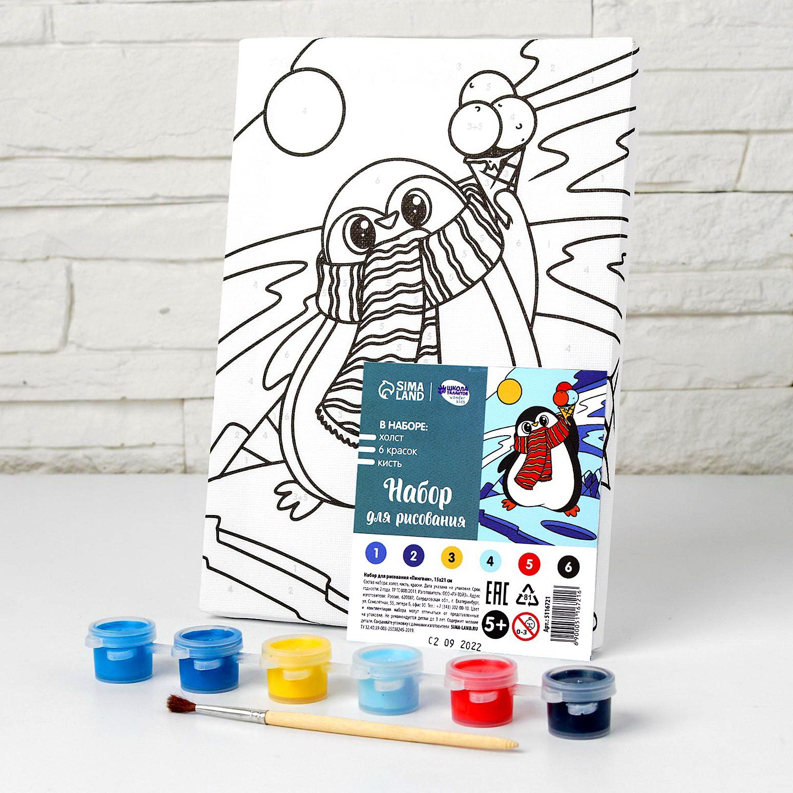 Картина по номерам на холсте с подрамником на новый год "Пингвин", 21x15 см, Школа талантов, Россия