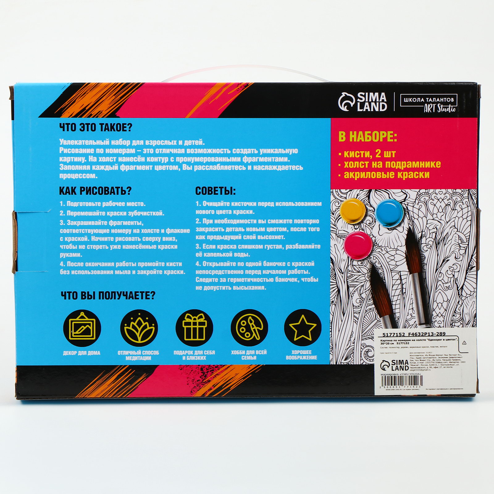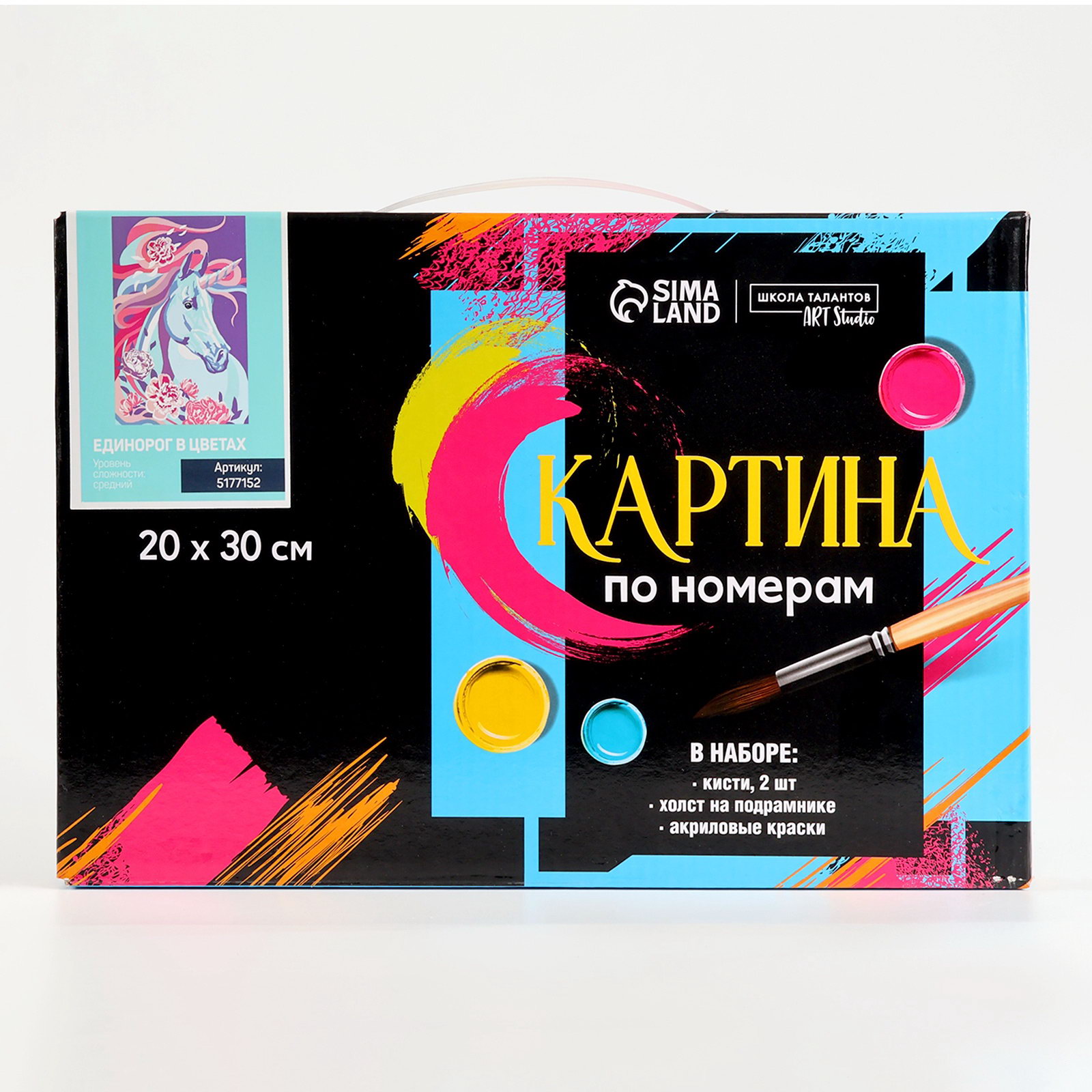Картина по номерам на холсте с подрамником "Единорог в цветах", 30х20 см, 21x31x2.4 см., Школа талантов, Китай