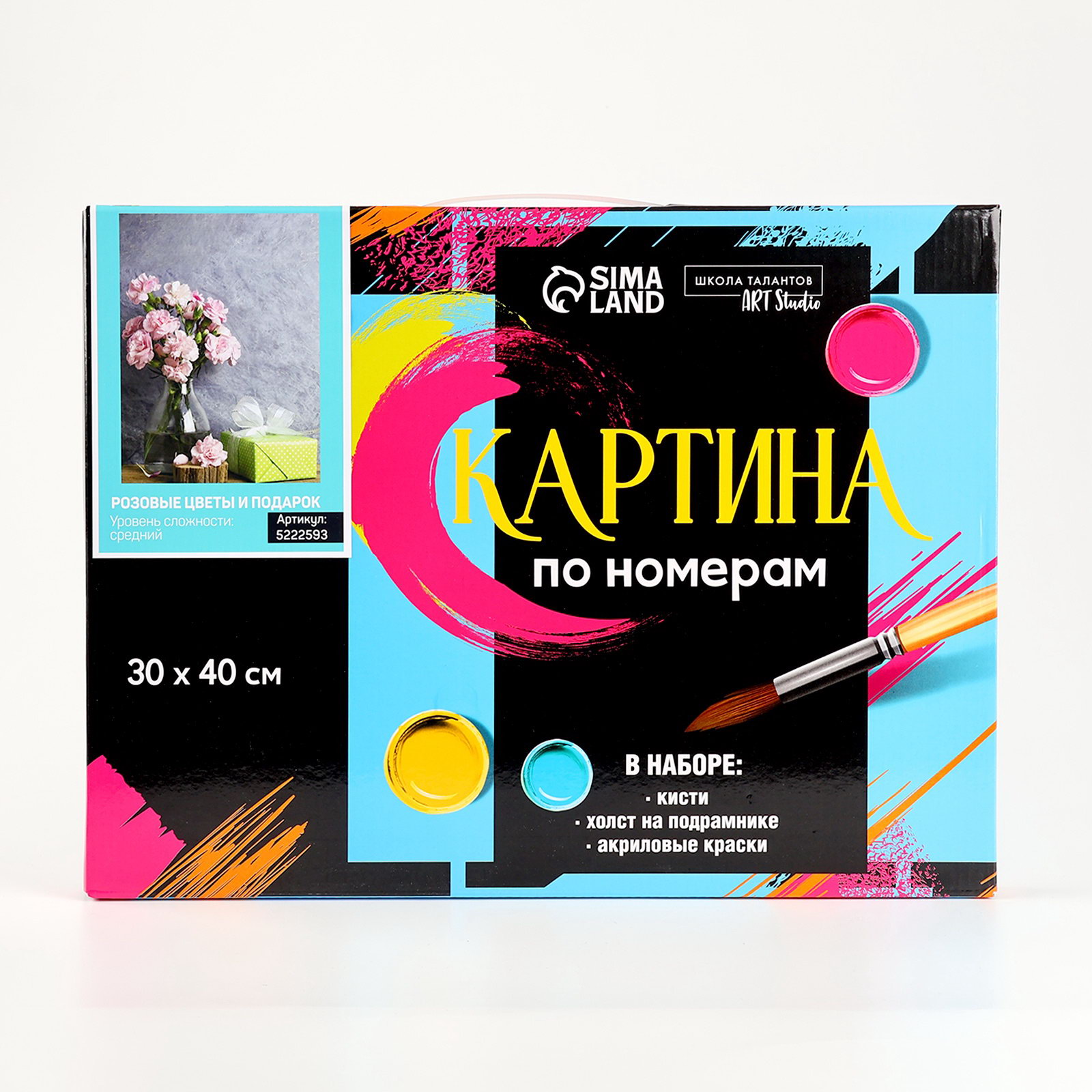 Картина по номерам на холсте с подрамником "Розовые цветы и подарок", 40х30 см, 40x30x2 см., Школа талантов, Китай