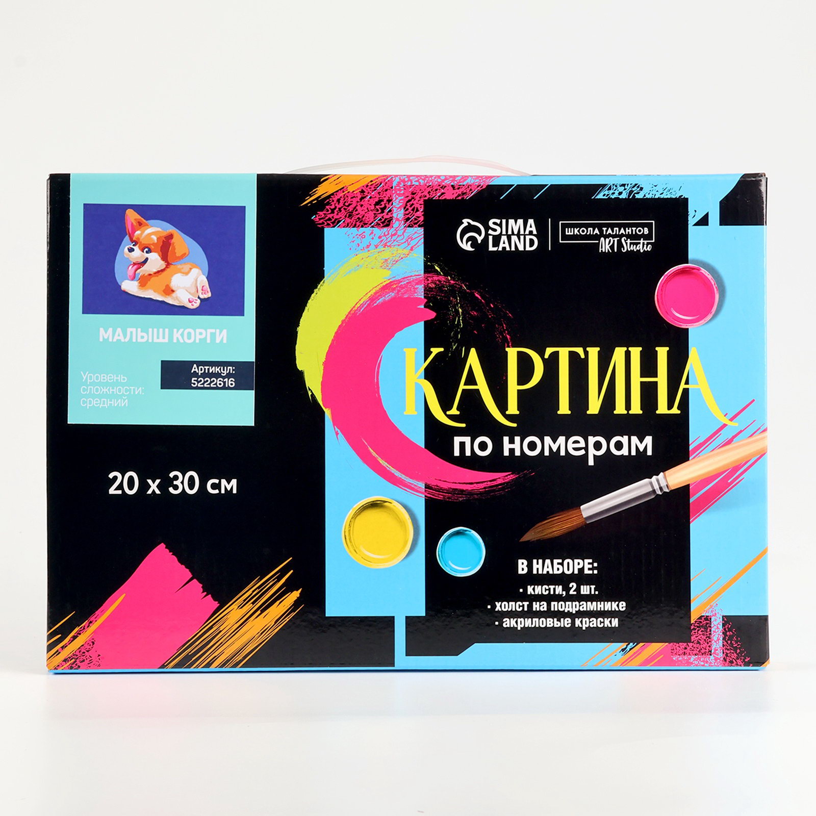 Картина по номерам на холсте с подрамником "Малыш Корги" 20х30 см, 21x31x2.4 см., Школа талантов, Китай