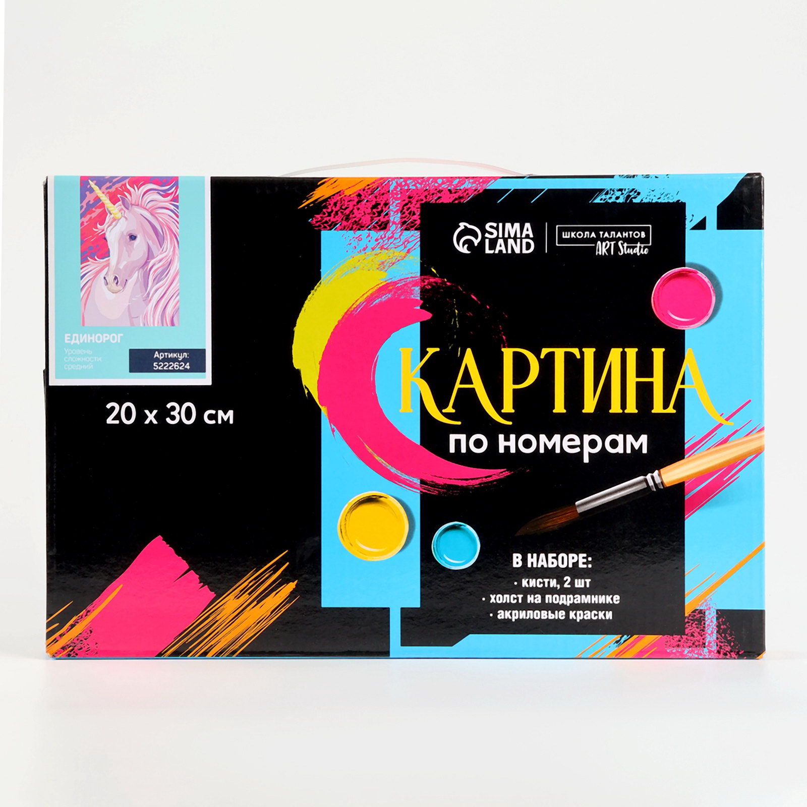 Картина по номерам на холсте с подрамником "Единорог" 20х30 см, 21x31x2.4 см., Школа талантов, Китай