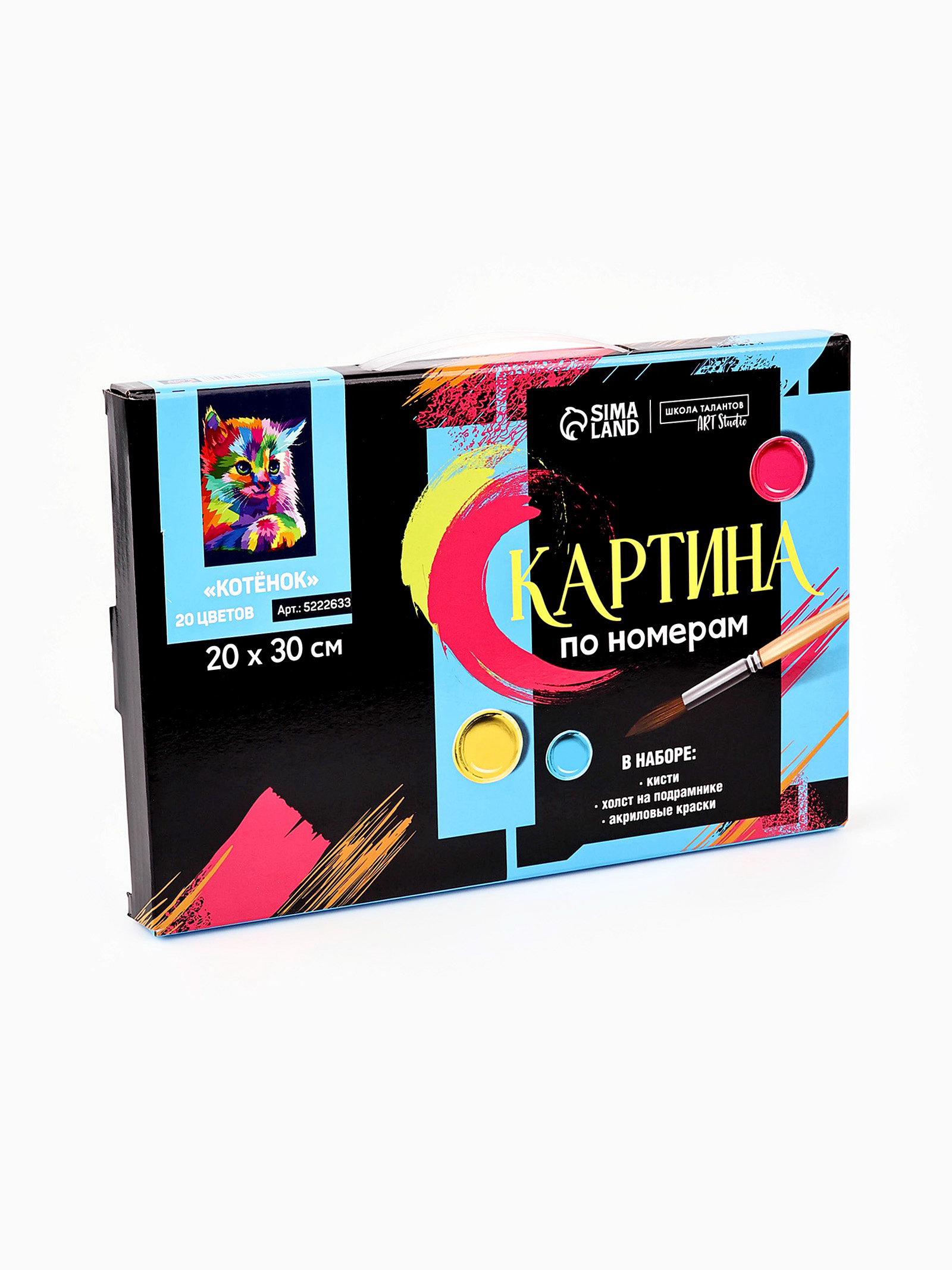 Комплектация набора: С кистью (-ями), С красками Размер упаковки: 31 x 2.4 x 21 см. Ориентация изображения: Вертикально Возраст: От 7 лет tnved: 3213100000 tnved: 3213100000 Вид: Холст под роспись Размер, см: 20 x 30 Тематика: Животный мир Темпер. ограничение НЕ НИЖЕ ℃: -10 Для кого: Унисекс Тип холста: Холст на подрамнике Уровень сложности: Средний Символ года: Нет Набор для рисования станет находкой для людей, которые хотят творить! Специально разработанная уникальная серия росписи по номерам станет верным помощником начинающим художникам, с помощью которой они будут создавать настоящие шедевры изобразительного искусства! Написанная своими руками картина украсит интерьер или станет прекрасным подарком для родных и близких людей. Картина по номерам на холсте с подрамником "Котёнок" 20x30 см понравится и детям, и взрослым. Холст разделён на множество мелких фрагментов, на каждом из которых указано число, соответствующее цвету, которым нужно закрасить данный участок. В набор входят все необходимые оттенки красок, каждый из которых пронумерован. Поначалу, когда вы только возьмёте холст в руки, будет сложно представить, что за чудесная картина получится в итоге! Но уверяем вас, результат превзойдёт все ожидания. Полотно с множеством оттенков, теней и красок будет выглядеть так, словно оно из музея. Раскрашивание по номерам покорило сердца миллионов людей по всему миру, ведь с ним каждый может создать шедевр! Присоединяйтесь к этому увлекательному занятию, творите и наслаждайтесь результатами. | ||