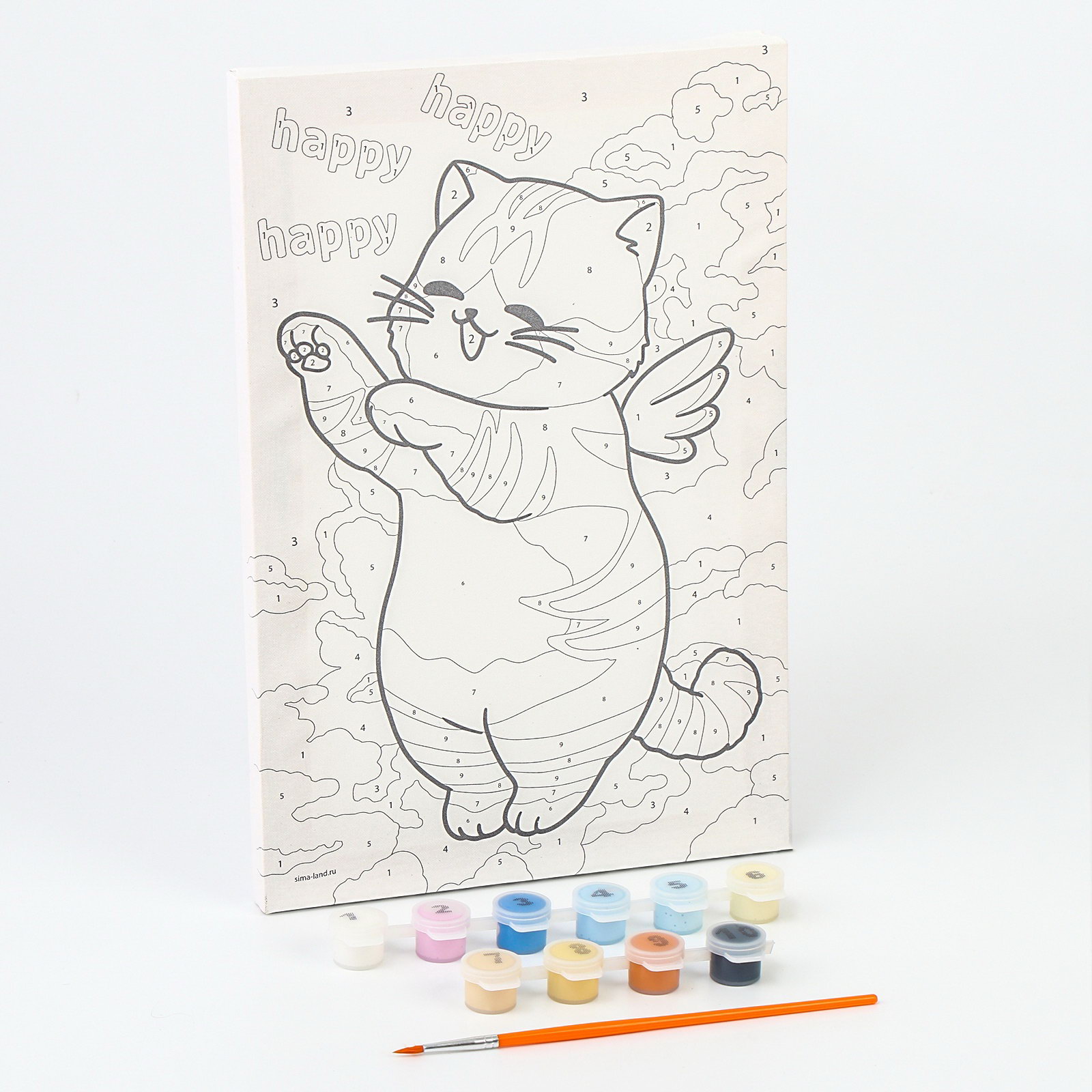 Картина по номерам для детей на холсте с подрамником "Счастливый котик", 20 x 30 см, Школа талантов, Россия