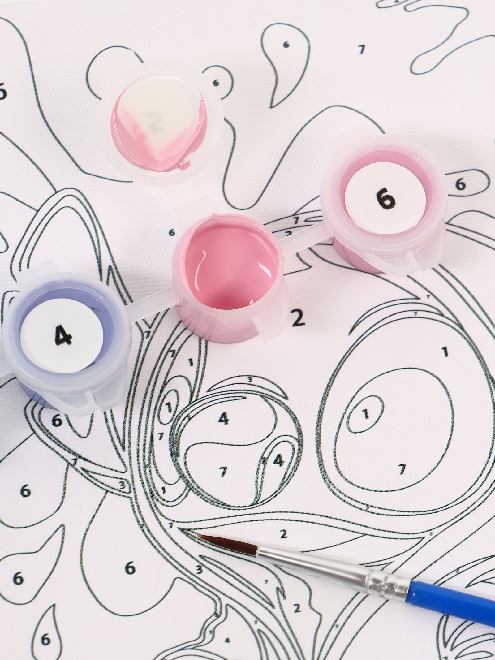 На холст нанесена схема, где пронумерован каждый сектор. Номер цвет, написанный на баночке с краской. Нужно только раскрасить каждый сектор в соответствующий цвет. Картина может быть, как для личного пользования, так и в качестве подарка! | ||
