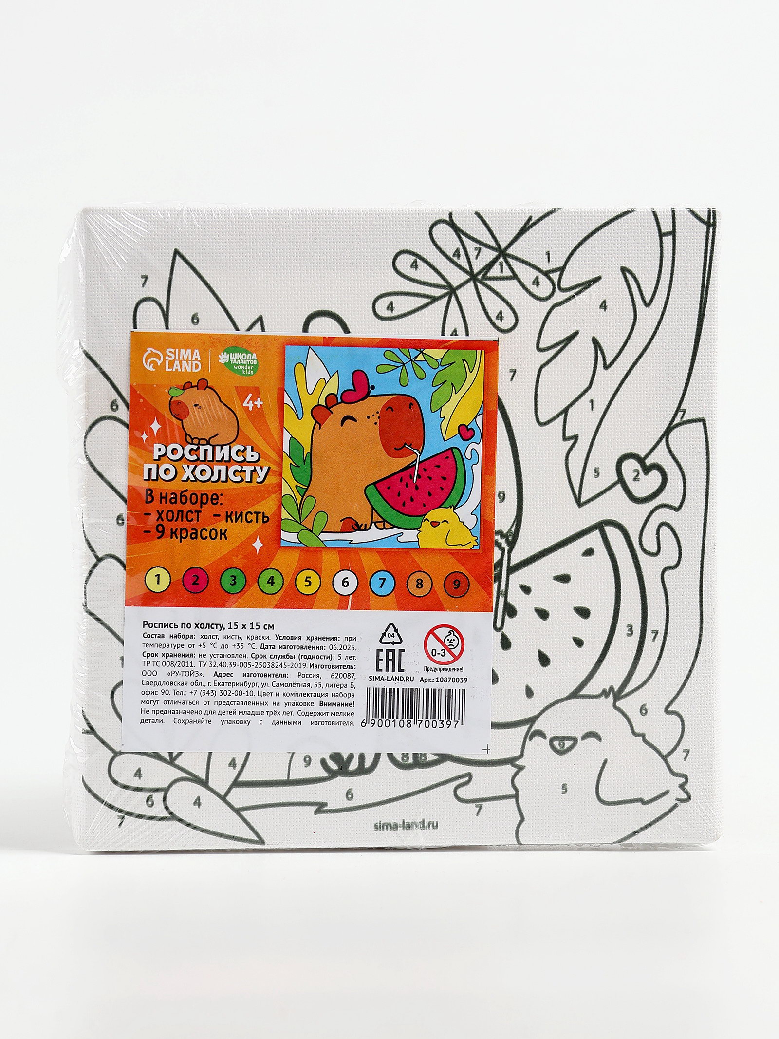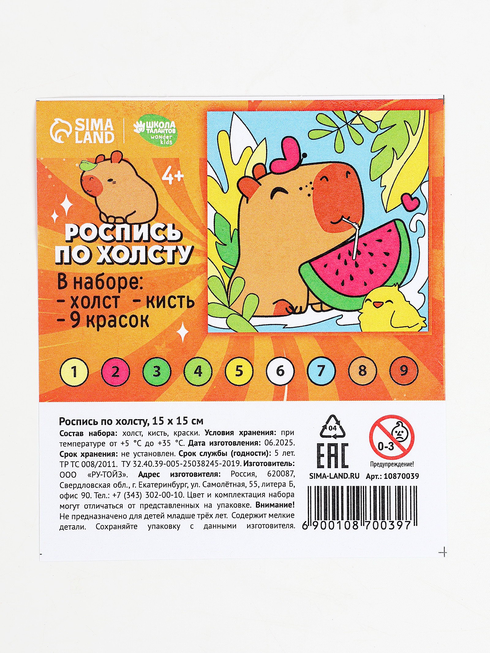 Картина по номерам "Капибара с арбузом" 15x15 см, Школа талантов, Россия