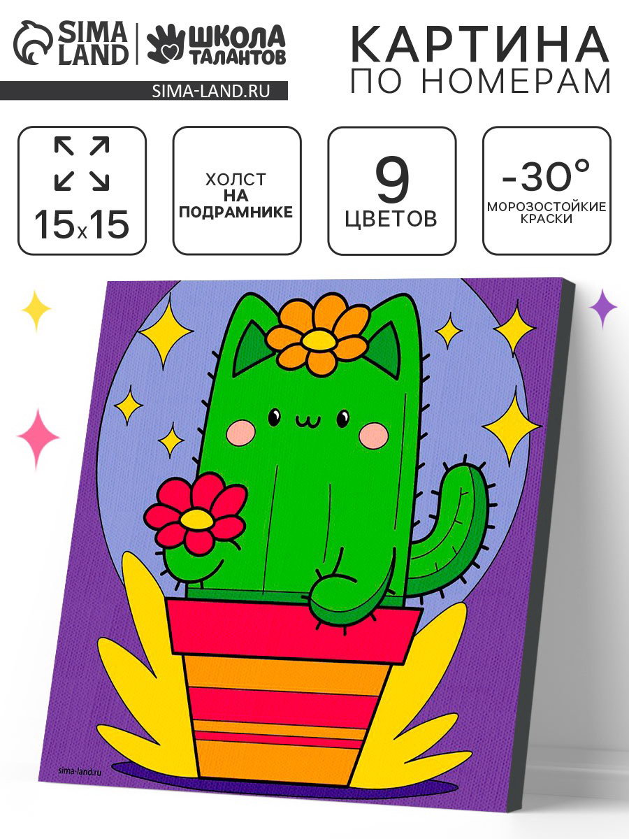 Картина по номерам "Забавный кактус" 15x15 см, Школа талантов, Россия