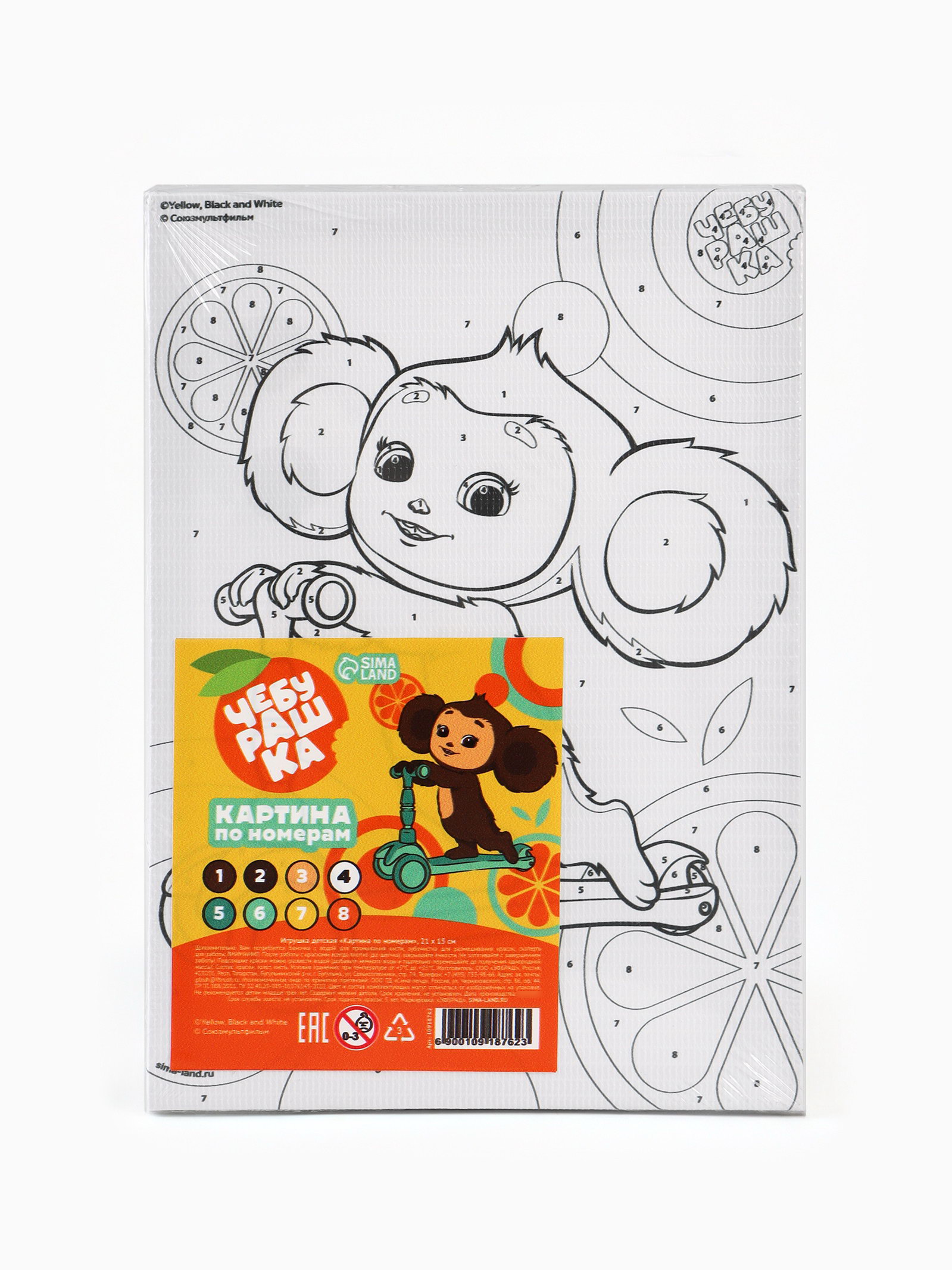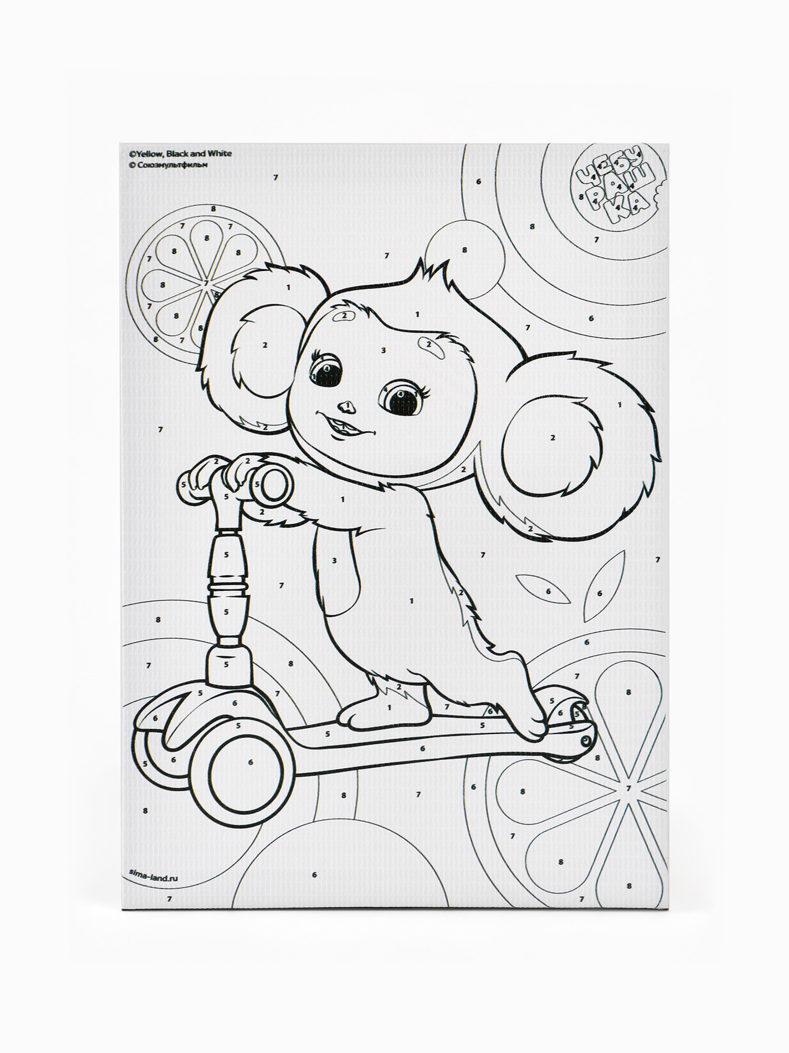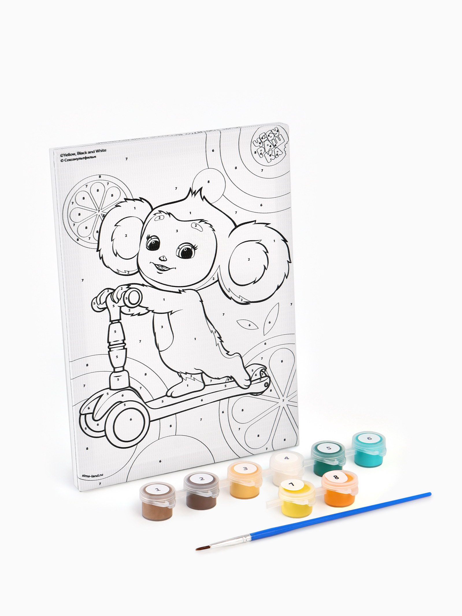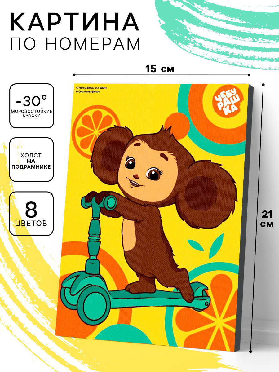 Картина по номерам с подрамником "Чебурашка на самокате", 21x15 см, ЧЕБУРАШКА, Китай