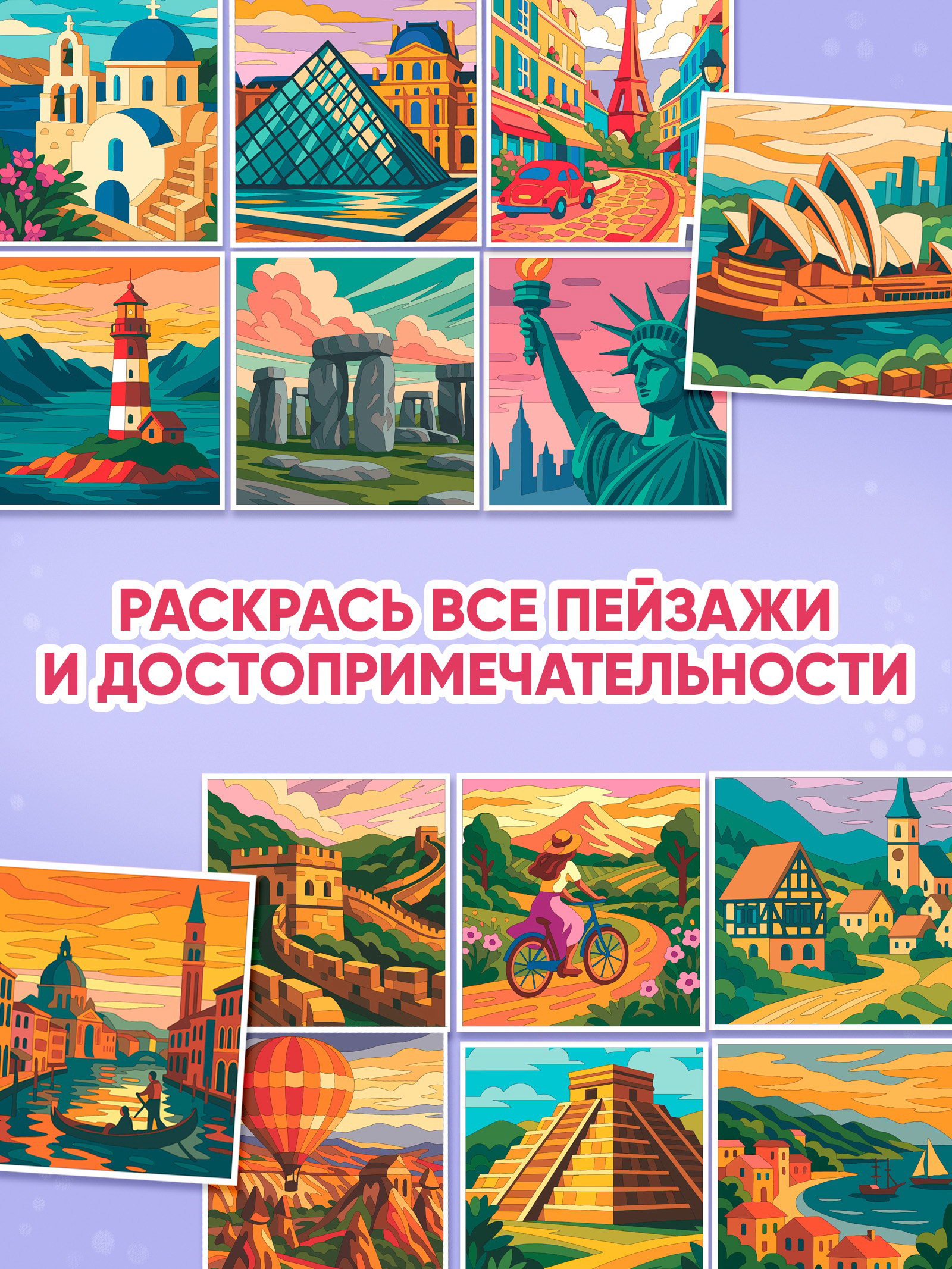 Раскраска картина по номерам "Путешествие по свету", 14 картин, 21x21x0.5 см., БУКВА-ЛЕНД, Россия