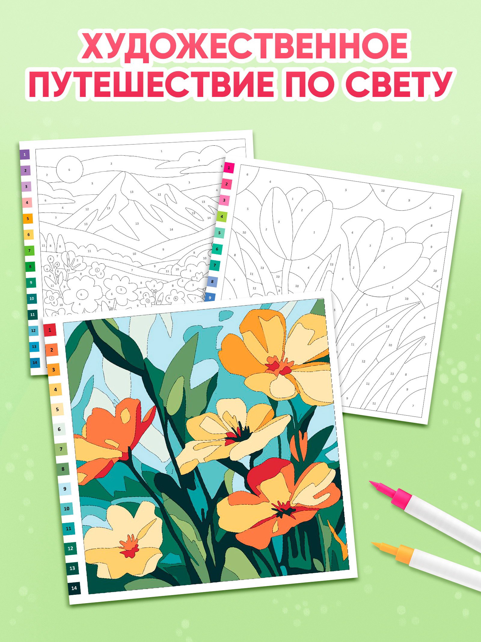 Раскраска картина по номерам "Прекрасные цветы", 14 картин, 21x21x0.5 см., БУКВА-ЛЕНД, Россия