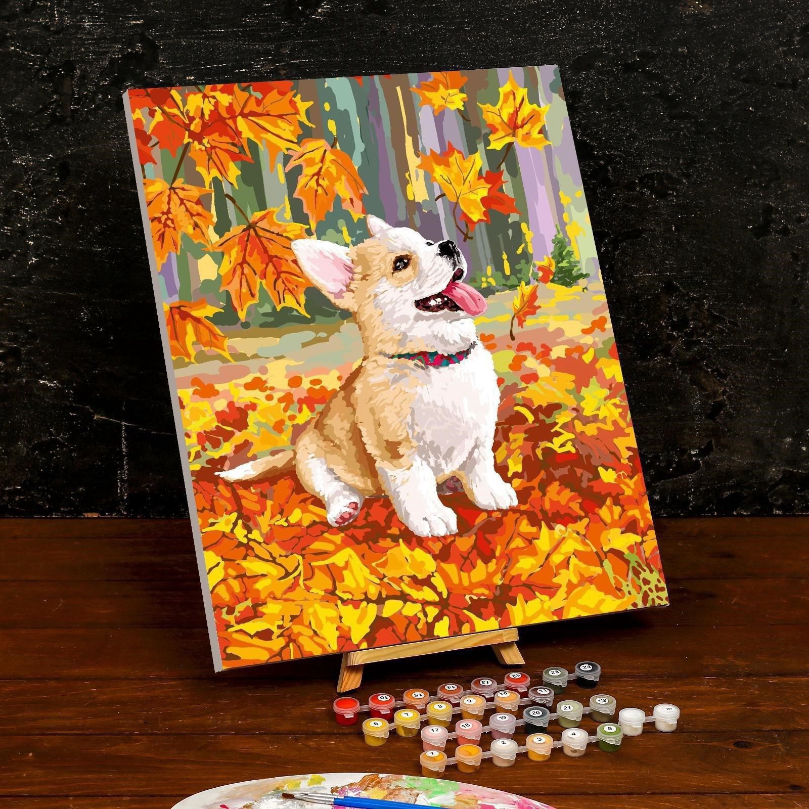 Картина по номерам на холсте с подрамником "Корги в осенней листве" 40*50 см, Школа талантов, Россия