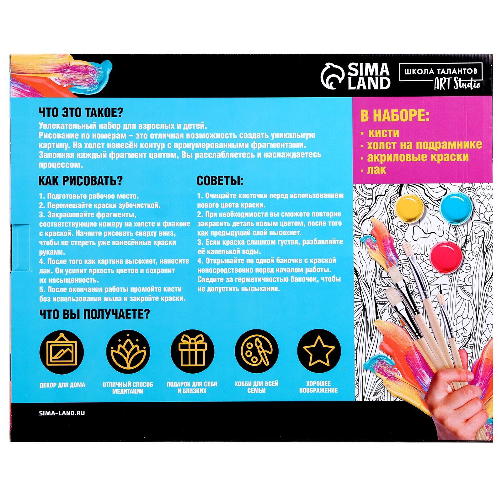 Комплектация набора: С кистью (-ями), С красками, С холстом Возраст: Для взрослых, От 7 лет Размер упаковки: 51 x 41 x 2.5 см. tnved: 3213100000 Тематика: Животный мир Для кого: Унисекс Размер, см: 40 x 50 Количество цветов: 24 Темпер. ограничение НЕ НИЖЕ ℃: -50 Уровень сложности: Средний Ориентация изображения: Вертикально Вид: Холст под роспись Тип холста: Холст на подрамнике Набор для рисования станет находкой для людей, которые хотят творить! Специально разработанная уникальная серия росписи по номерам станет верным помощником начинающим художникам, с помощью которой они будут создавать настоящие шедевры изобразительного искусства! Написанная своими руками картина украсит интерьер или станет прекрасным подарком для родных и близких людей. Холст разделён на множество мелких фрагментов, на каждом из которых указано число, соответствующее цвету, которым нужно закрасить данный участок. В набор входят все необходимые оттенки красок, каждый из которых пронумерован. Поначалу, когда вы только возьмёте холст в руки, будет сложно представить, что за чудесная картина получится в итоге! Но уверяем вас, результат превзойдёт все ожидания. Полотно с множеством оттенков, теней и красок будет выглядеть так, словно оно из музея. Раскрашивание по номерам покорило сердца миллионов людей по всему миру, ведь с ним каждый может создать шедевр! Присоединяйтесь к этому увлекательному занятию, творите и наслаждайтесь результатами. Комплектация