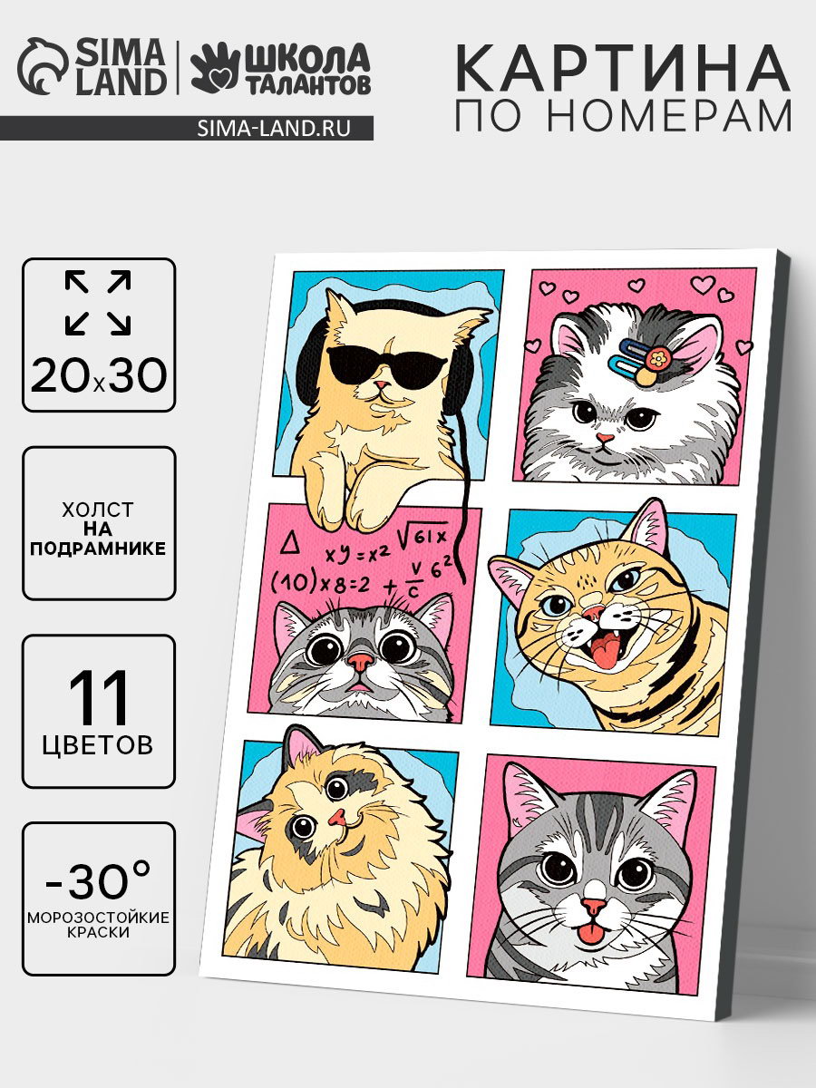 Картина по номерам "Смешные котики", 20x30 см, Школа талантов, Россия