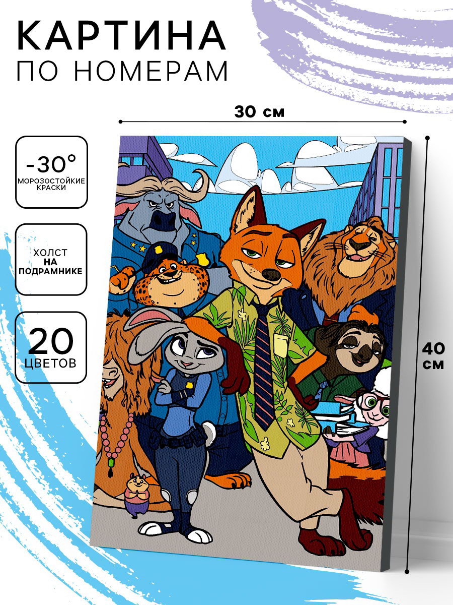 Картина по номерам на холсте с подрамником "Зверополис" 30x40 см, Disney, Китай