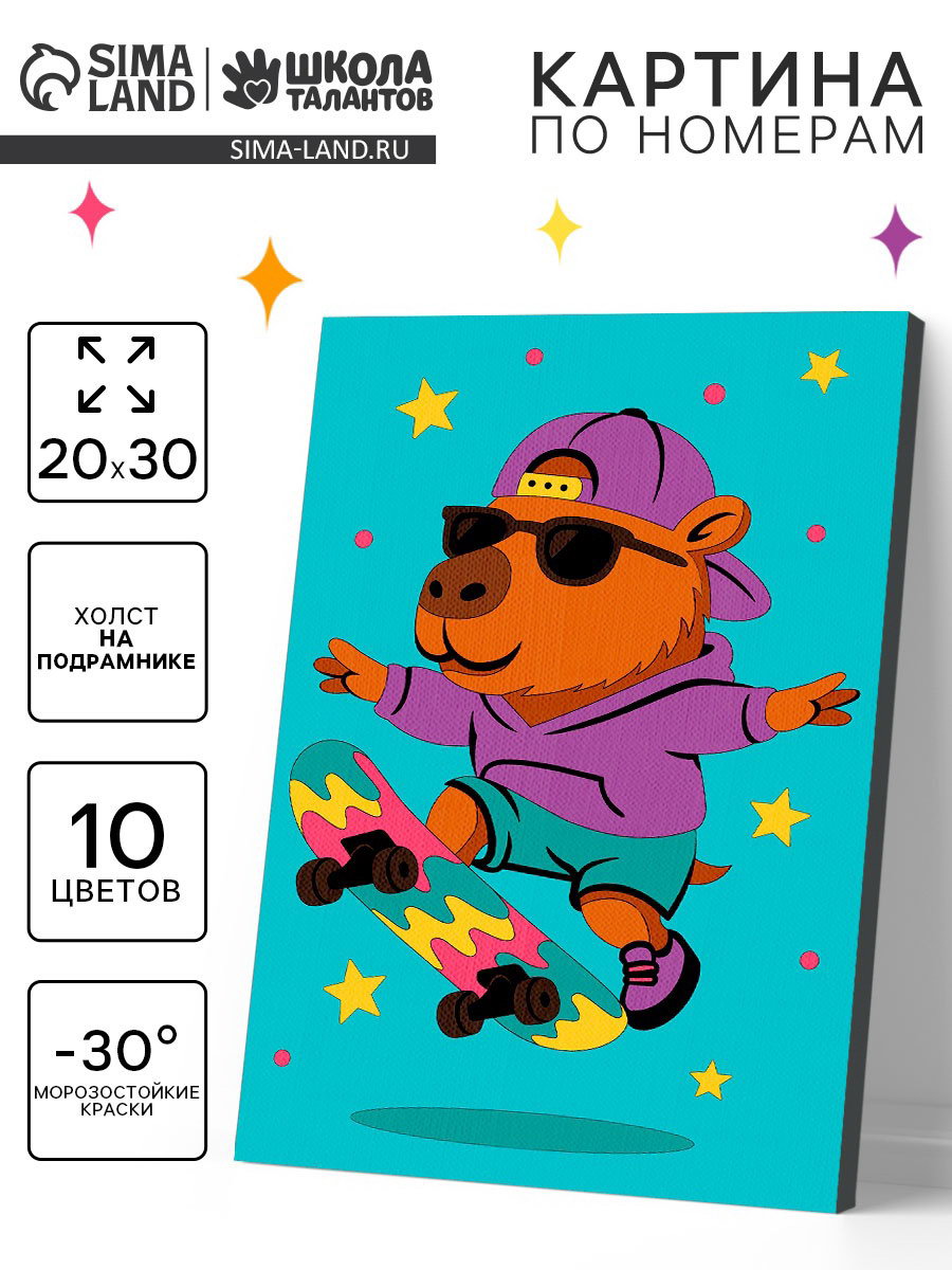 Картина по номерам "Капибара на скейте", 20x30 см, Школа талантов, Россия
