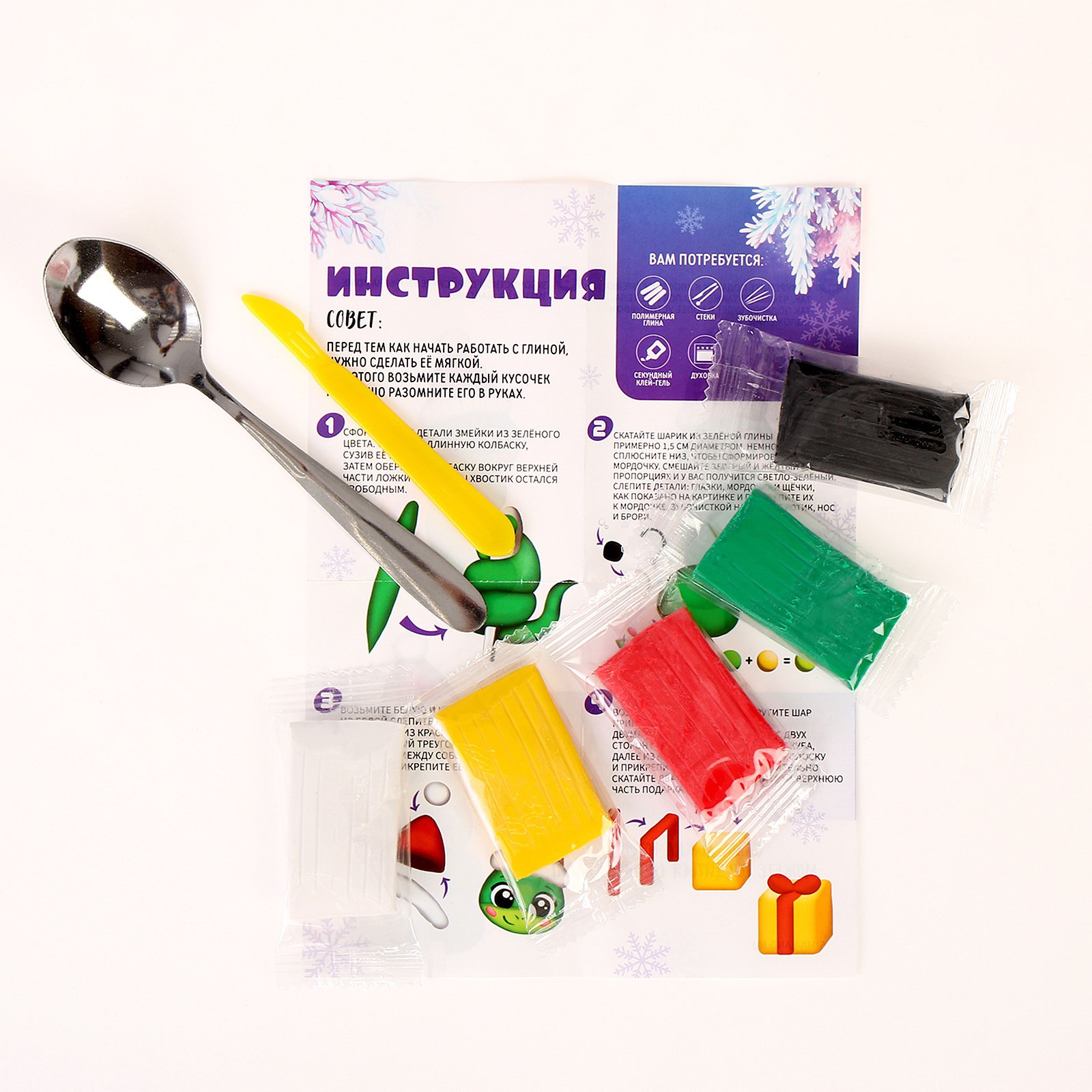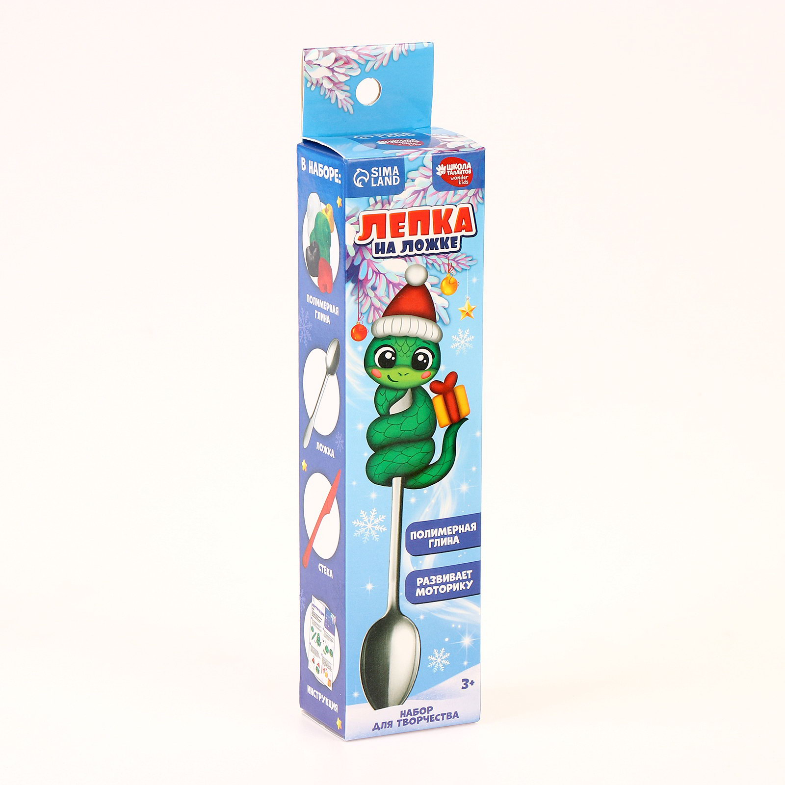 Лепка на ложке "Новый год! Змея на ёлке", набор для творчества, символ года 2025, 4.5x16.7x2.7 см., Школа талантов, Китай