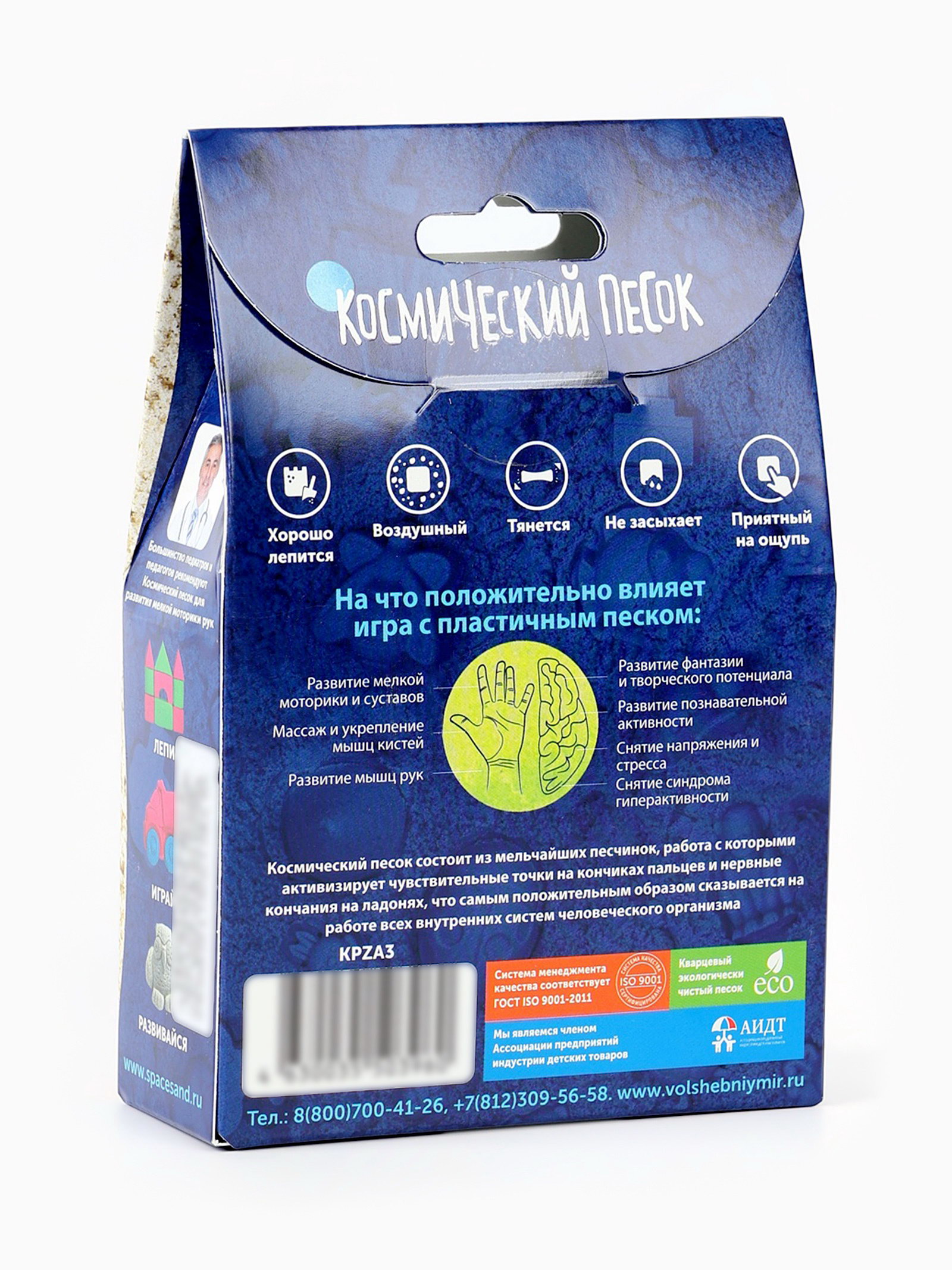 Размер упаковки: 10 x 15 x 4 см. tnved: 9503007000 Температурное ограничение: Нет Вес, кг: 150 Цвет: Зелёный Количество цветов: 1 Возраст: От 3 лет Вид песка: Кинетический песок Вид упаковки: Картонная коробка с европодвесом Играть с космическим песком ребёнок сможет когда и где захочет. Материал не прилипает к рукам и легко убирается со всех поверхностей. А удобная упаковка позволяет компактно хранить песок и избегать его загрязнения. Неоспоримая польза песка для лепки: