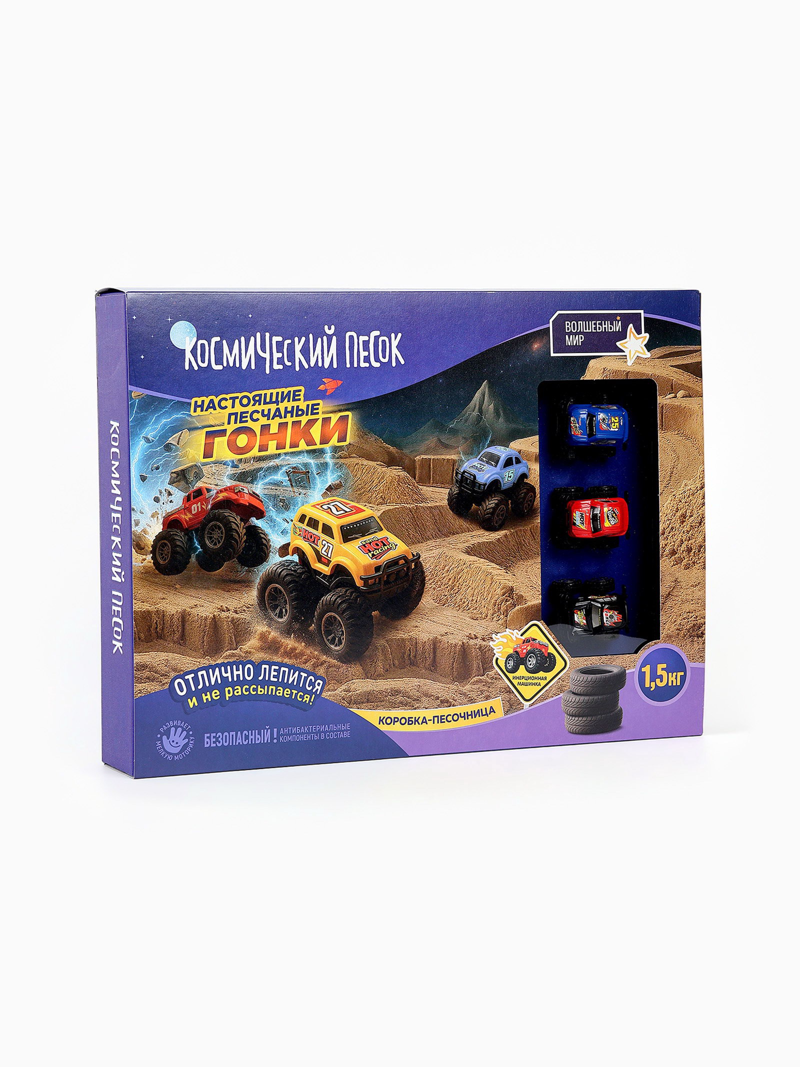 Космический песок "Гонки" с песочницей 1.5 кг, Волшебный мир, Россия