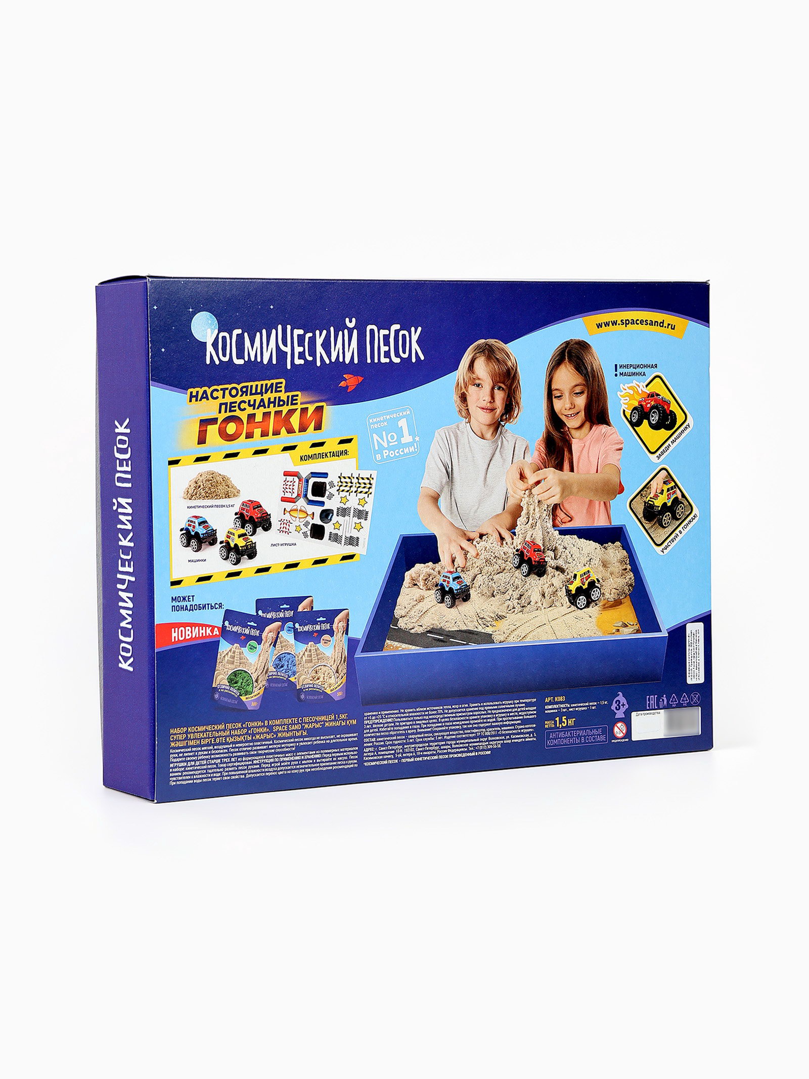 Размер упаковки: 33 x 8 x 44 см. tnved: 9503007000 Температурное ограничение: Нет Возраст: От 3 лет Вес, кг: 1.5 Вид песка: Кинетический песок Вид упаковки: Коробка картонная С набором "Гонки" ребёнок сможет устроить настоящие гонки, строить трассы и создавать уникальные фигуры. Мягкий песок превращает каждую игру в увлекательное и безопасное приключение. В наборе: