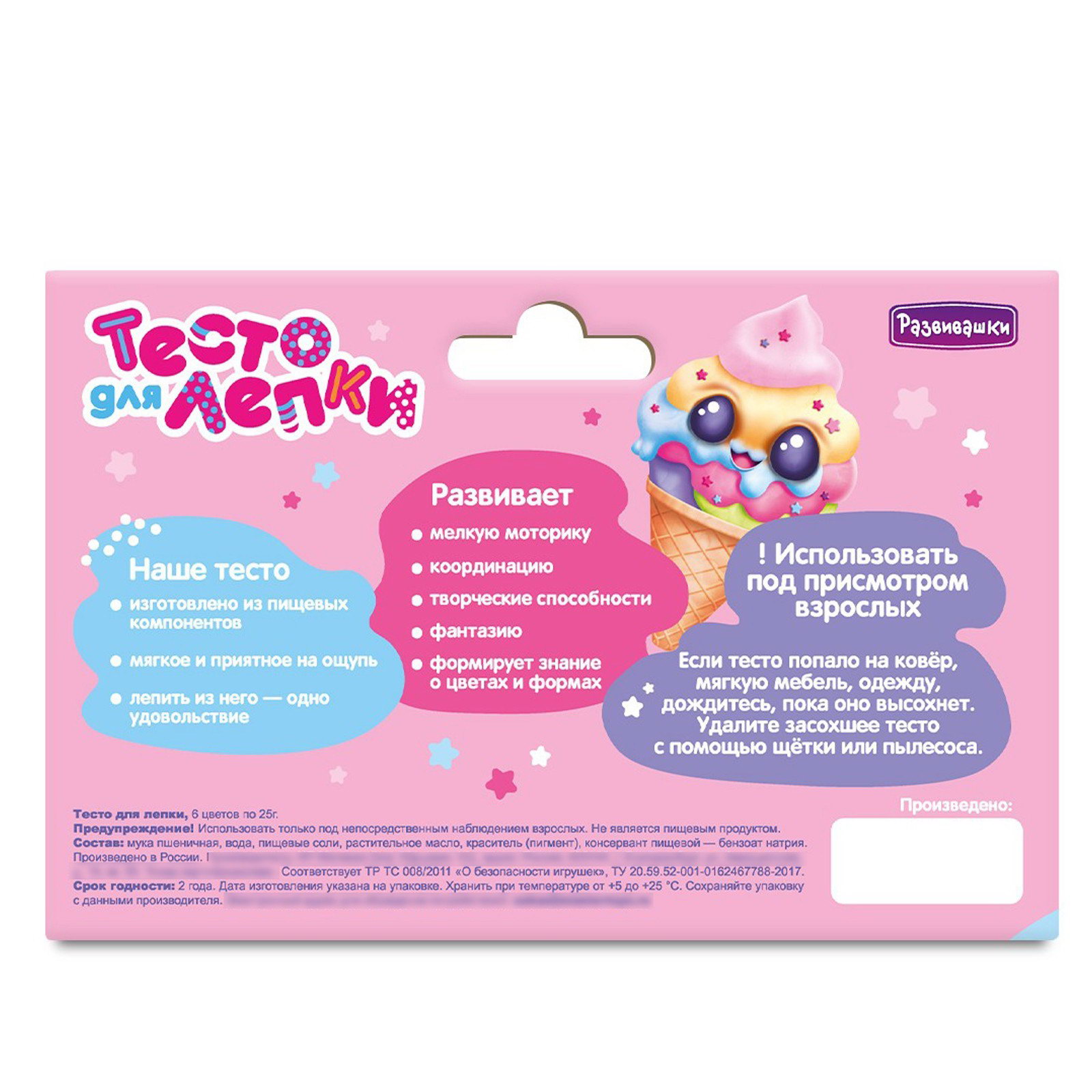 Тесто для лепки, в коробке 6 цветов по 25 г, нежные цвета, Развивашки, Россия