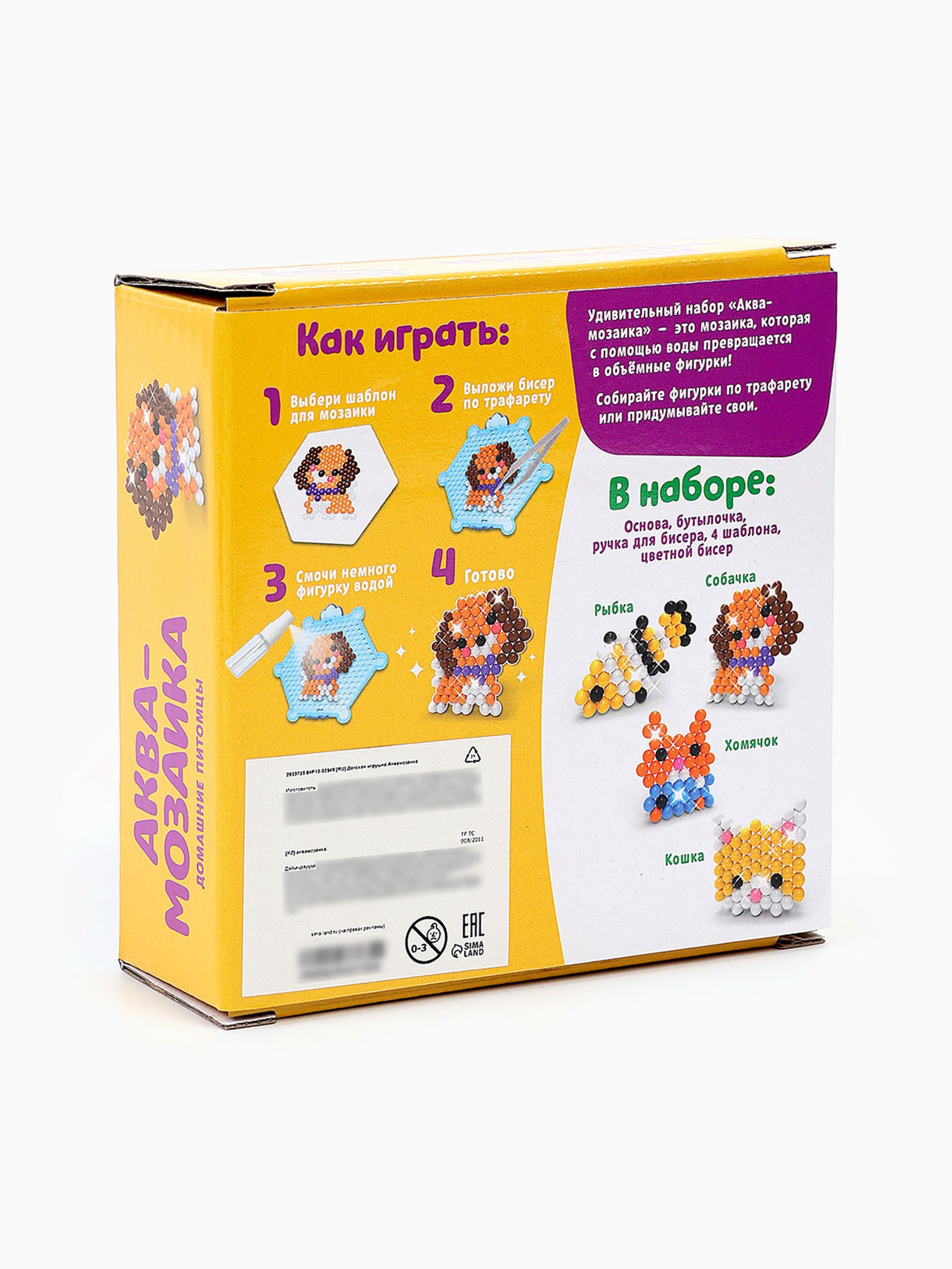 Размер упаковки: 12 x 4 x 12 см. Научная тема: Химия Вид мозаики: Аква-мозаика Для кого: Унисекс Возраст: От 3 лет tnved: 9503007000 Тематика: Животный мир Аквамозаика от торговой марки "Эврики" поможет весело и с пользой провести время. Ребёнок соберёт объёмные фигурки из шариков-пикселей, потренирует мелкую моторику и внимание. Детали плотно скрепляются друг с другом. С поделками можно играть или носить с собой как брелоки. Как сделать фигурку