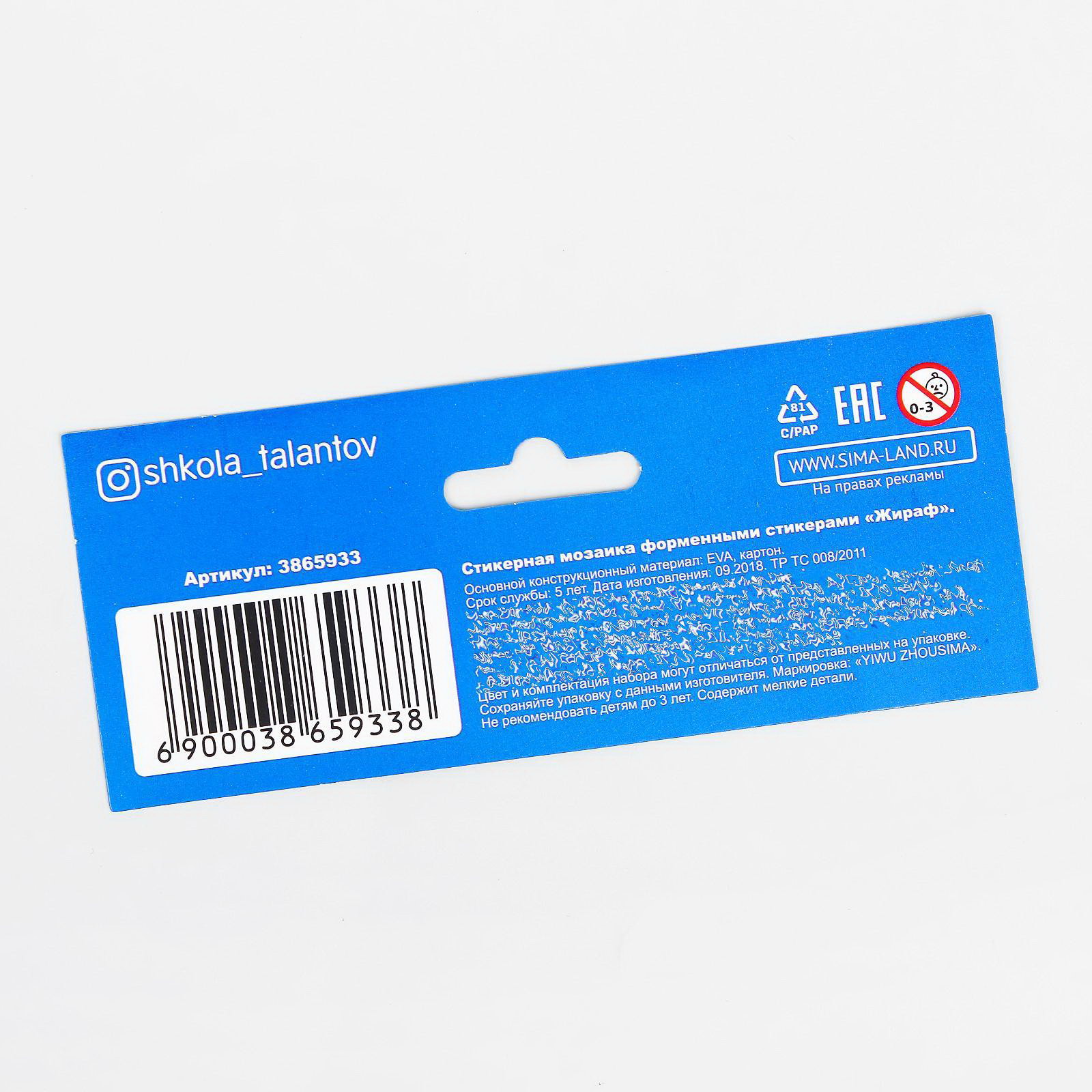 Аппликация стикерами форменными стикерами "Жираф", набор для творчества, стикерная мозаика, 14.8x21x0.3 см., Школа талантов, Китай