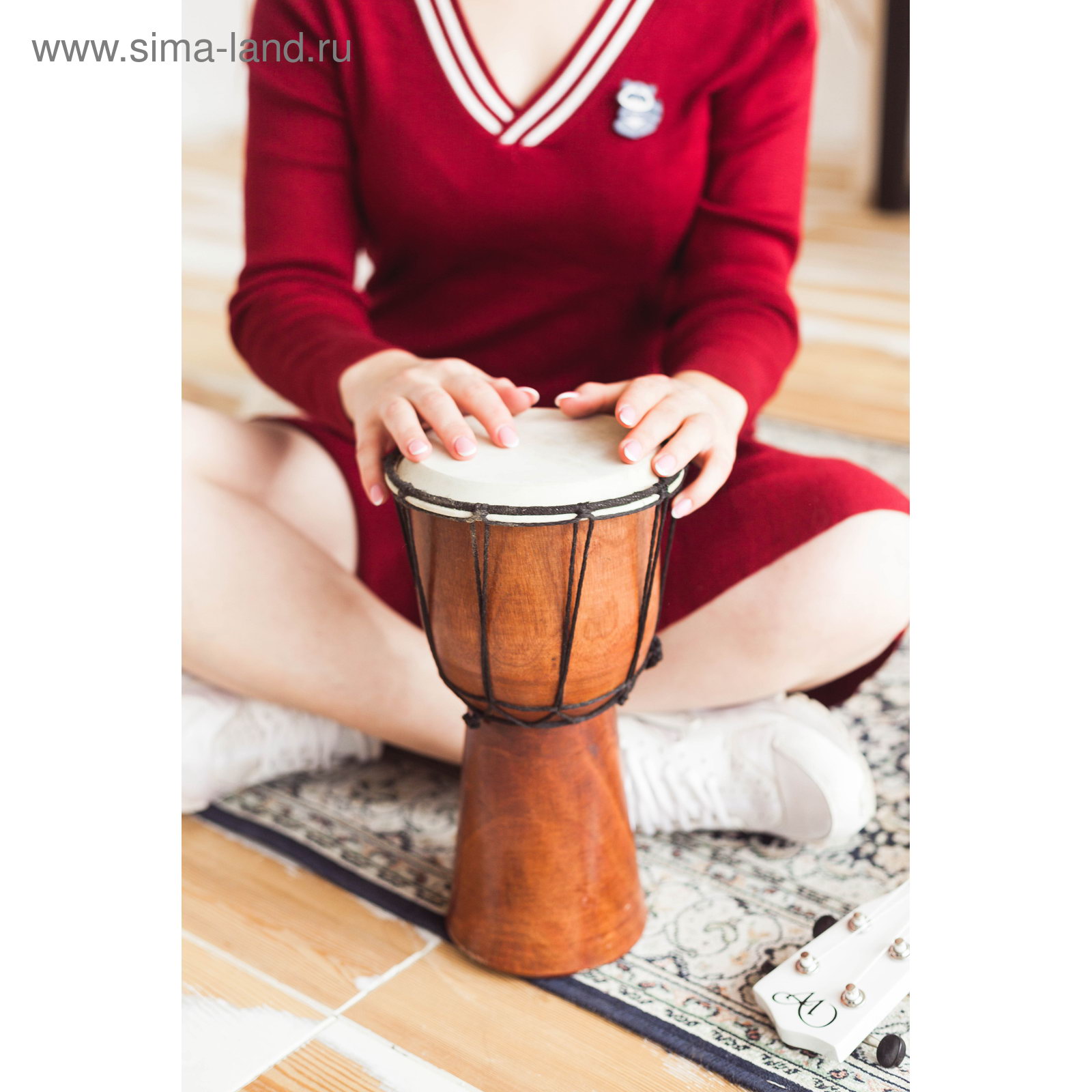 Сувенирный музыкальный инструмент барабан джембе "Классика" 30х15х15 см, 15x15x30 см., Индонезия