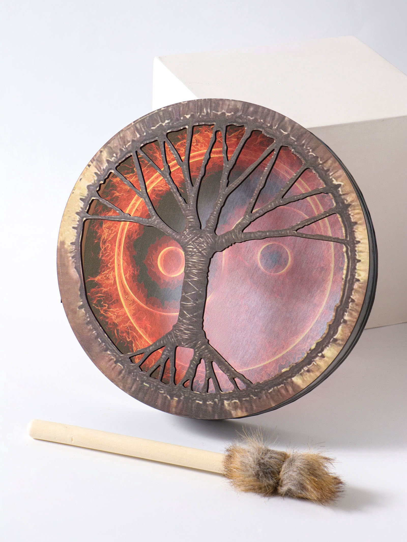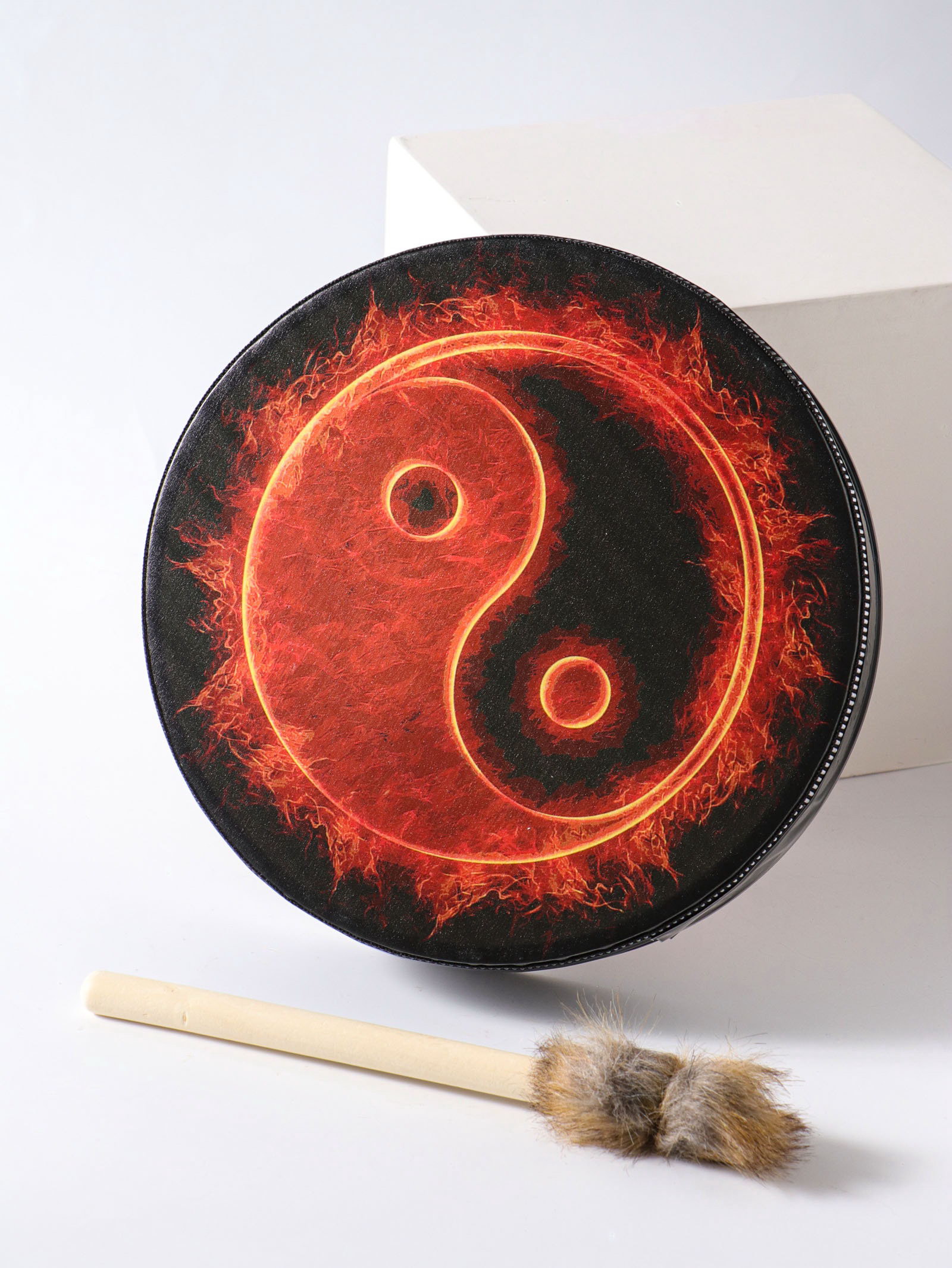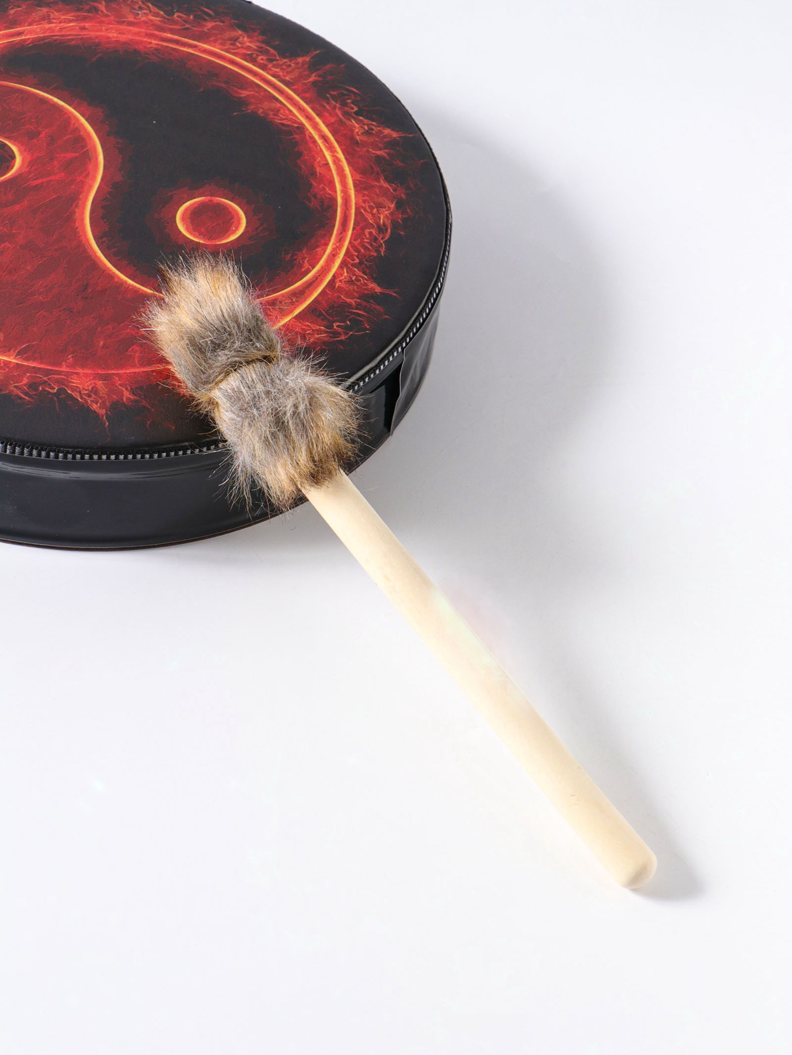 Шаманский бубен "Инь-ян и огонь", музыкальный инструмент, с колотушкой, 5x25x25 см, 25x25x5 см., Китай