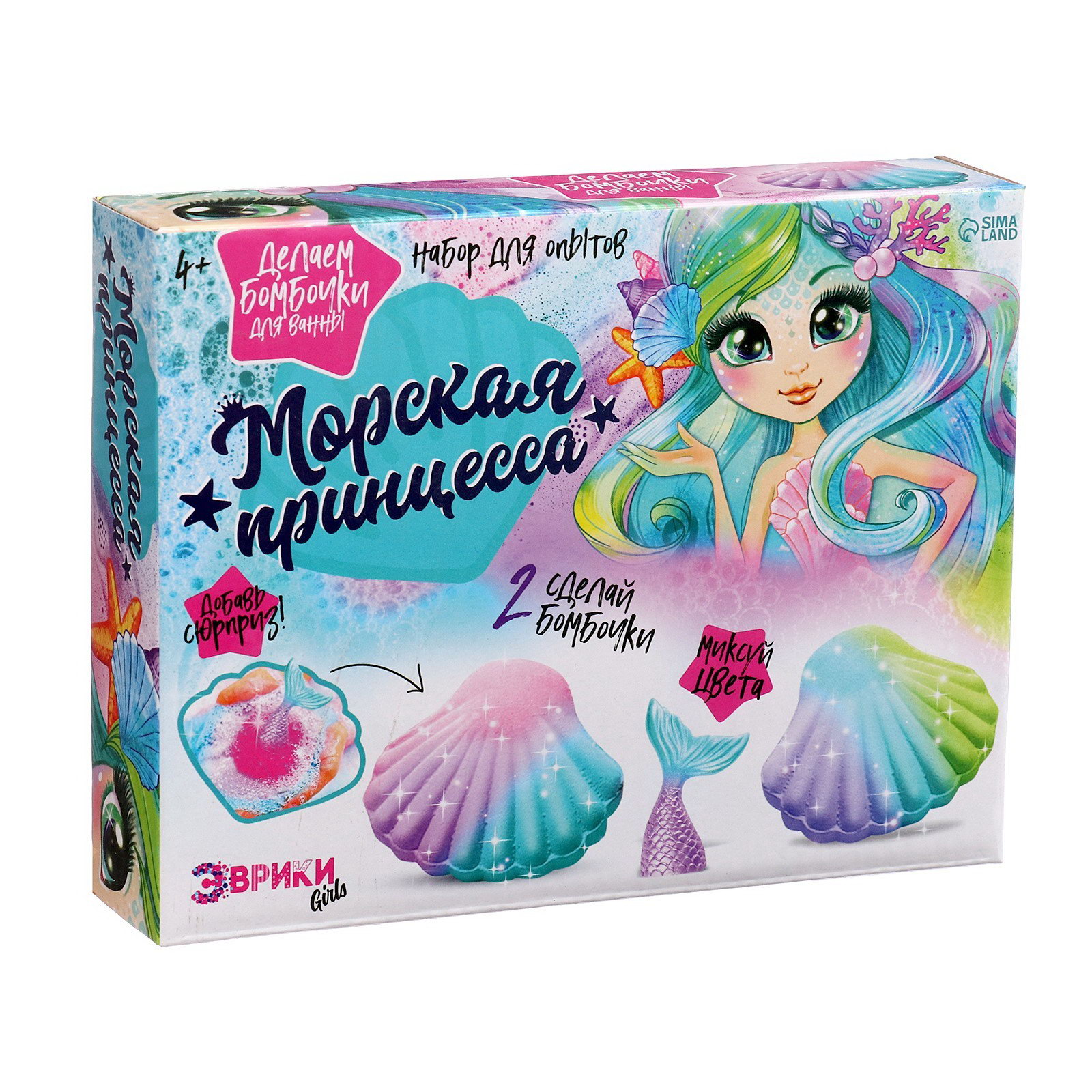 Бомбочки для ванны своими руками "Морская принцесса", детские, набор для опытов, 4.5x18x14.5 см., Эврики, Китай