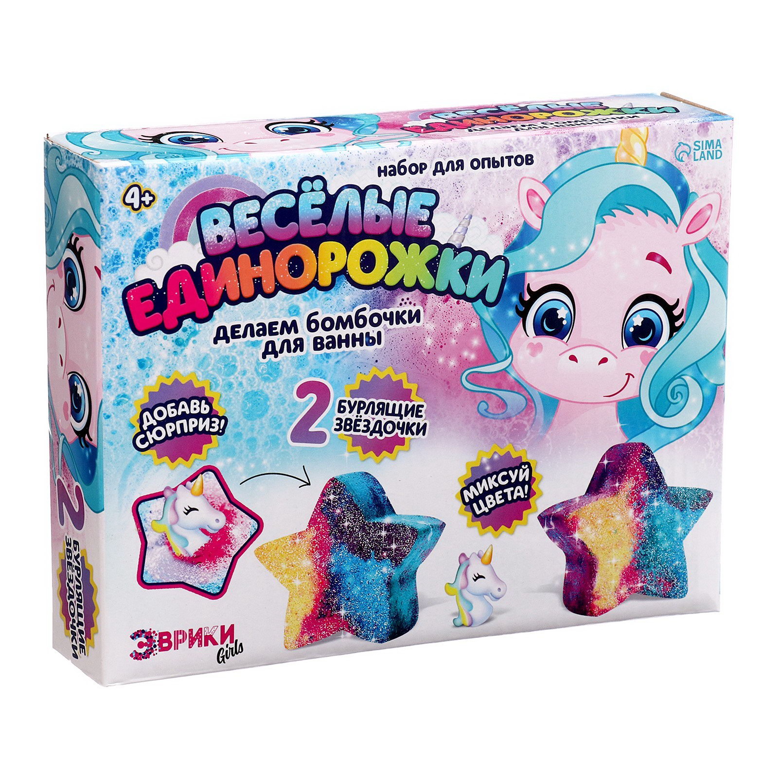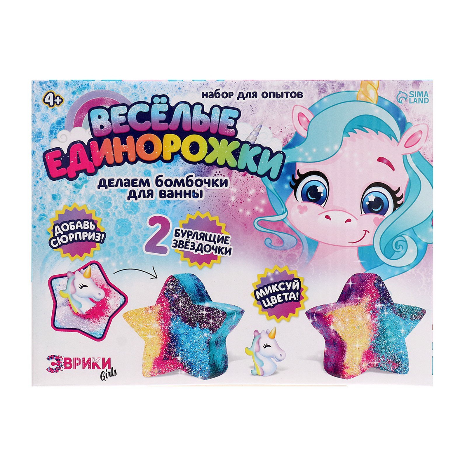 Бомбочки для ванны своими руками "Весёлые единорожки", детские, набор для опытов, 4.5x18x14.5 см., Эврики, Китай
