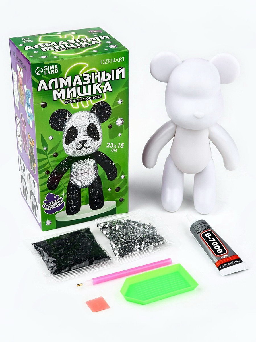 Алмазная мозаика на фигурке с полным заполнением "Мишка стразами", панда, 13x23.5x11.5 см., DzenArt, Китай