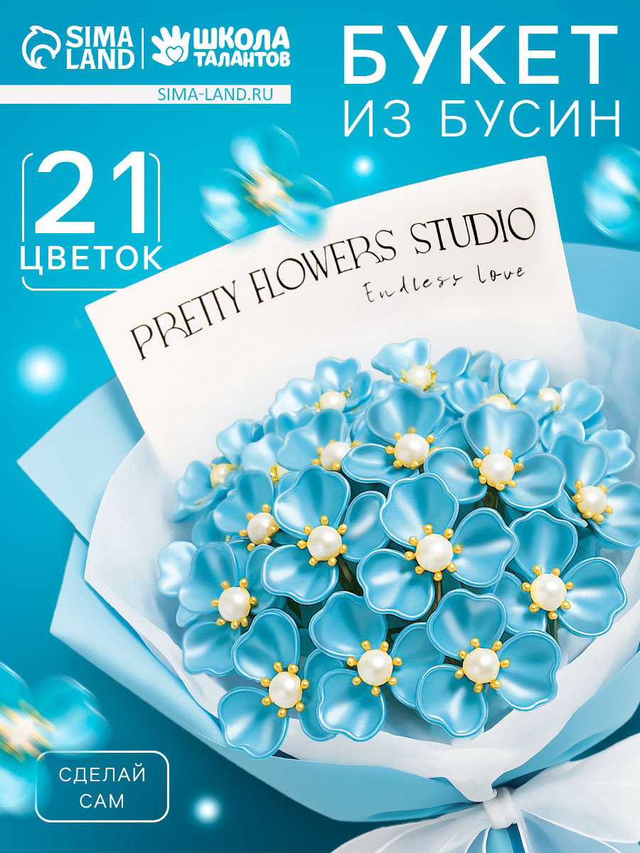 Набор для творчества. Букет из бусин, голубой, 31x21.6x0.8 см., Школа талантов, Китай
