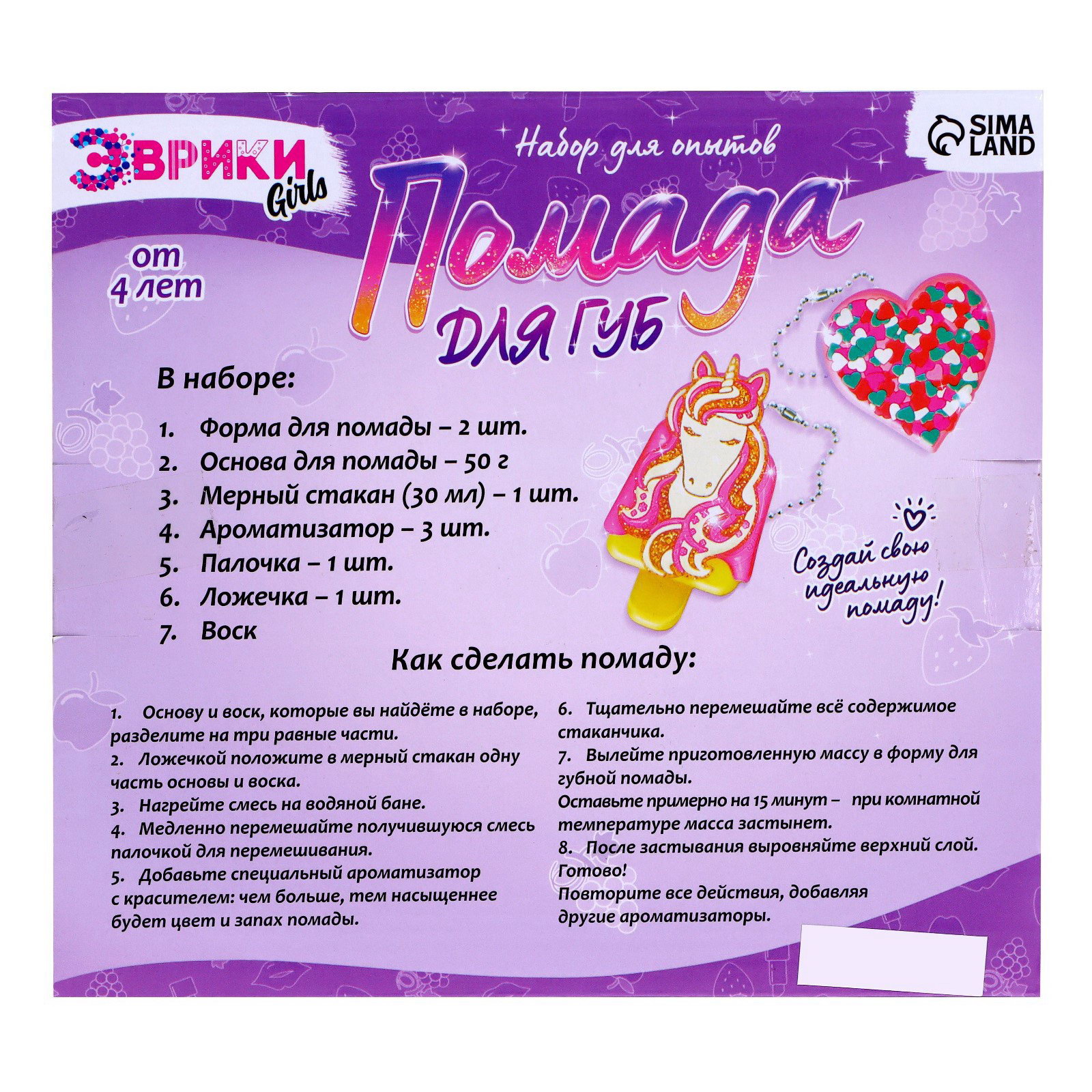Опыты для девочек "Помада для губ", единорог и сердечко, 4.5x15x13 см., Эврики, Китай