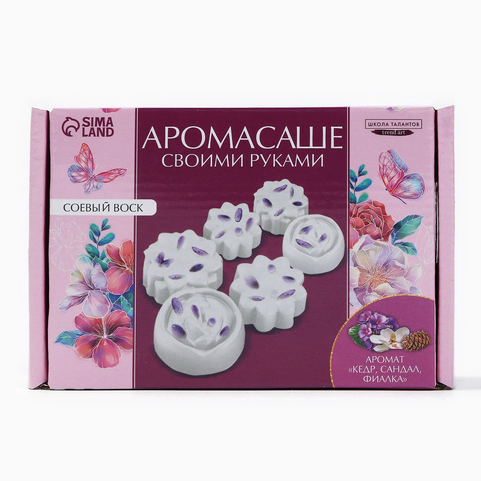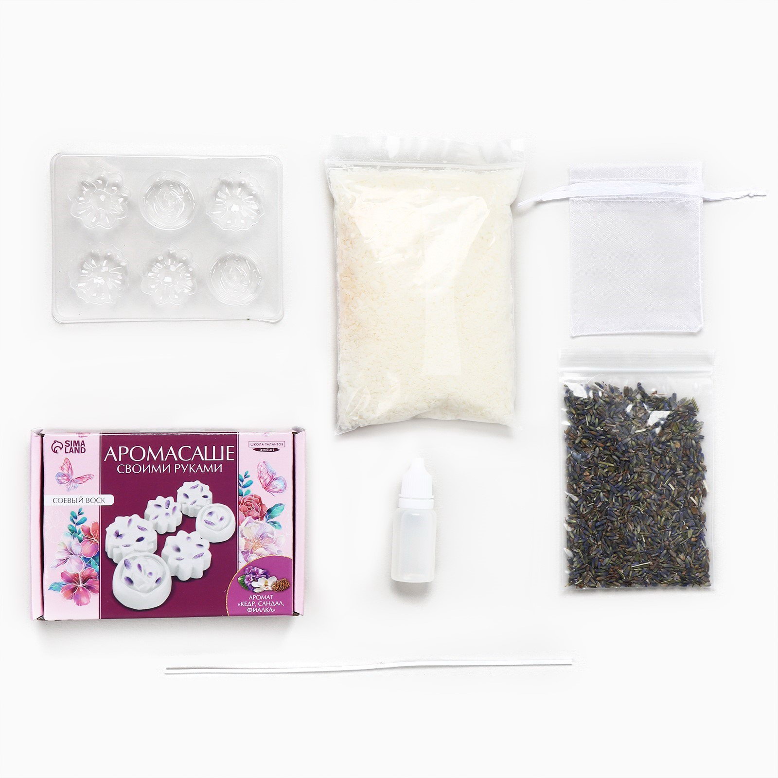 Аромасаше своими руками. Набор для создания ароматической фигурки из соевого воска "Цветы с сухоцветами", 8.7x12.4x5 см., Школа талантов, Китай