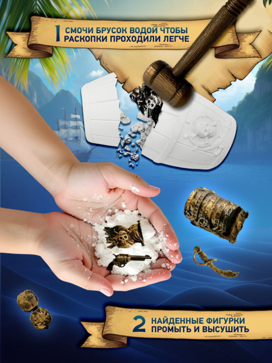 Размер упаковки: 30 x 6 x 21 см. tnved: 9504908000 Температурное ограничение: Нет Возраст: От 6 лет Игровой набор раскопки "Загадки пиратов" - увлекательные археологические приключения Набор для раскопок "Загадки пиратов" подарит ребёнку возможность почувствовать себя настоящим искателем сокровищ. В процессе игры необходимо аккуратно извлекать игрушки, скрытые внутри гипсовых фигур, развивая интерес к исследованию и открытиям. Преимущества набора: