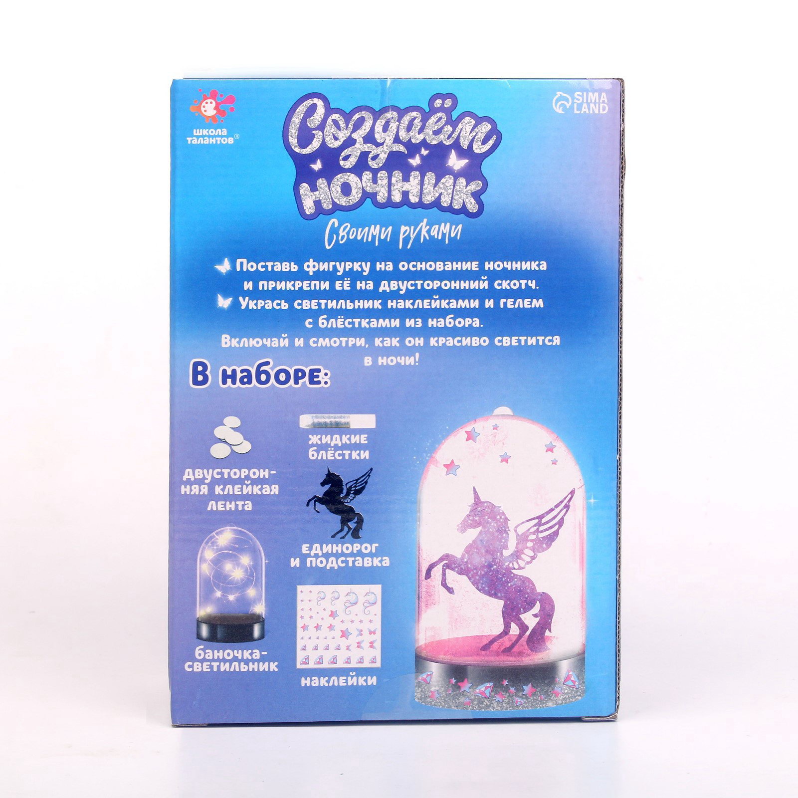 Ночник своими руками "Единорог", с декором, набор для творчества, 6.5x12x17.5 см., Школа талантов, Китай