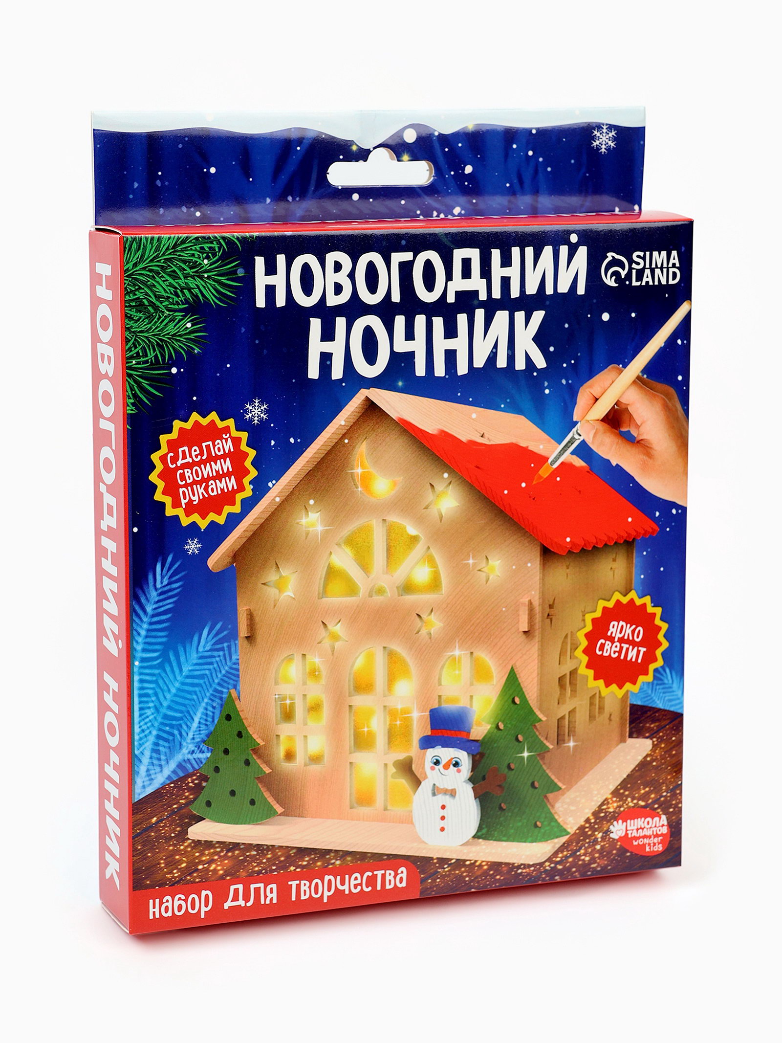 Набор для творчества "Новогодний ночник из дерева. Дом", светящийся, 15x15x15.5 см., Школа талантов, Китай
