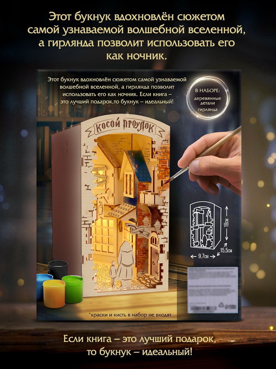 Ночник - конструктор своими руками из дерева "Волшебный мир", подставка - разделитель для книг, Эврики, Китай